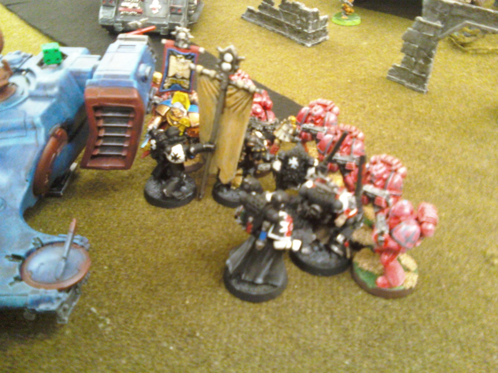 Chaplain Malleus leads an assault against Captain Vargus. The ferocity of the Chaplain forces Captain Vargus the break from combat. Vargus and his men were cut down by the sweeping advance.