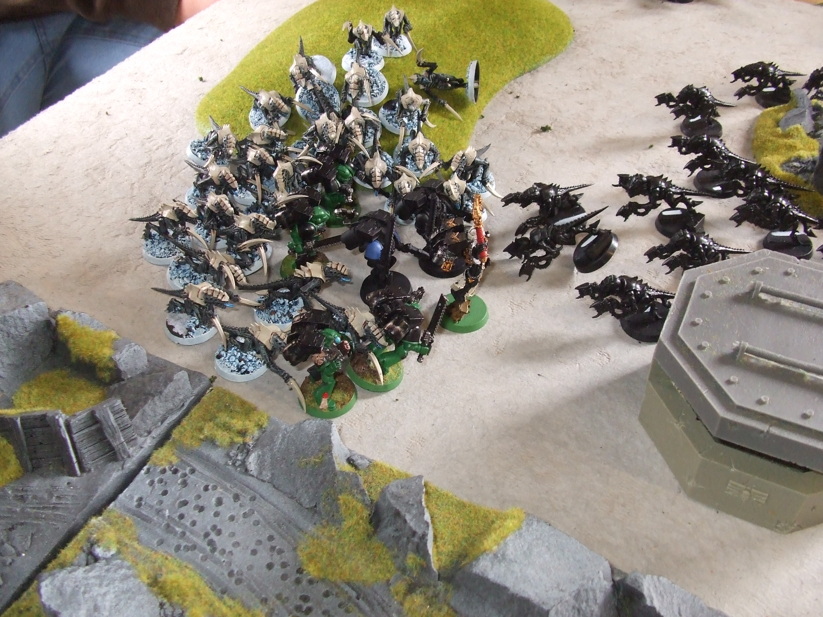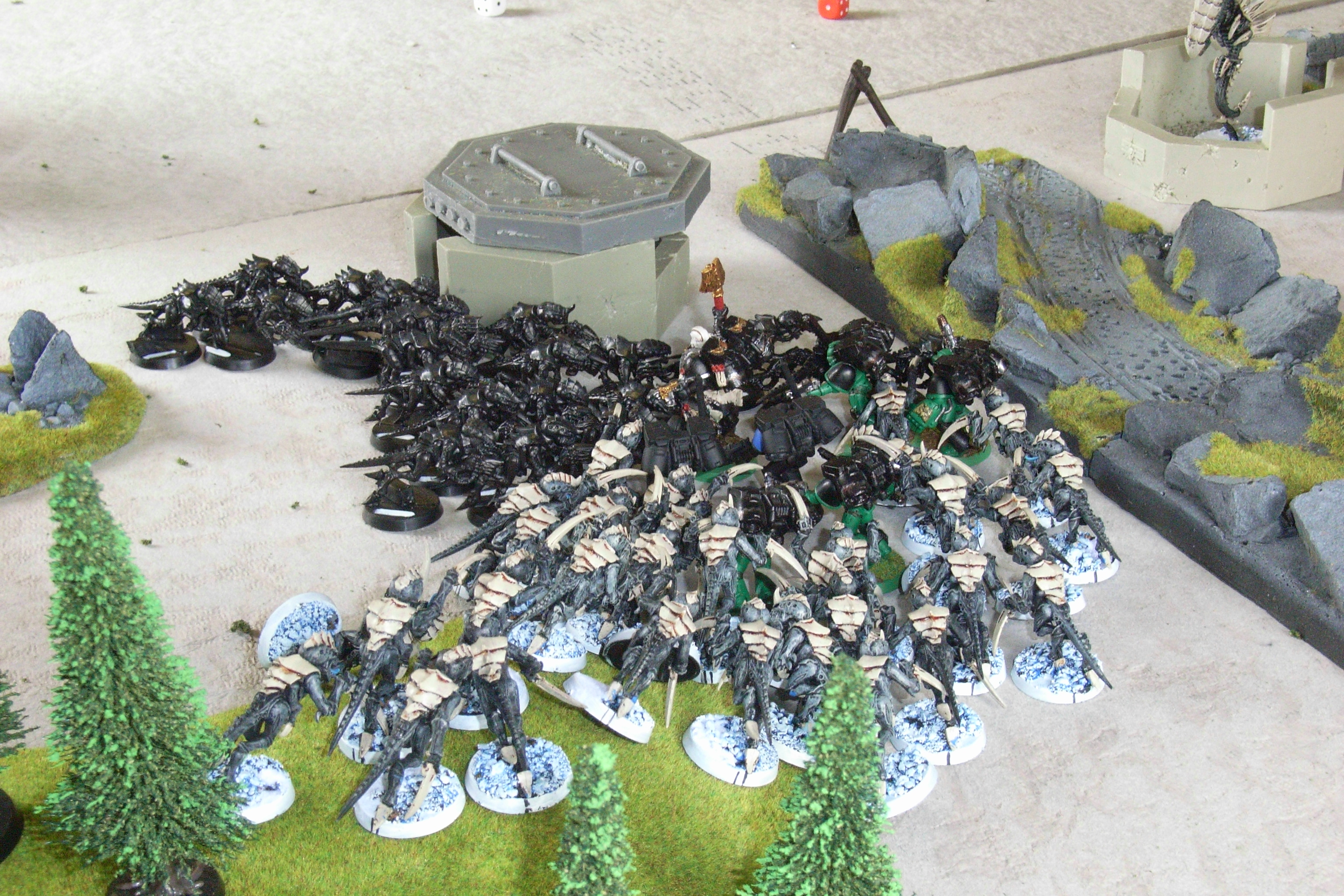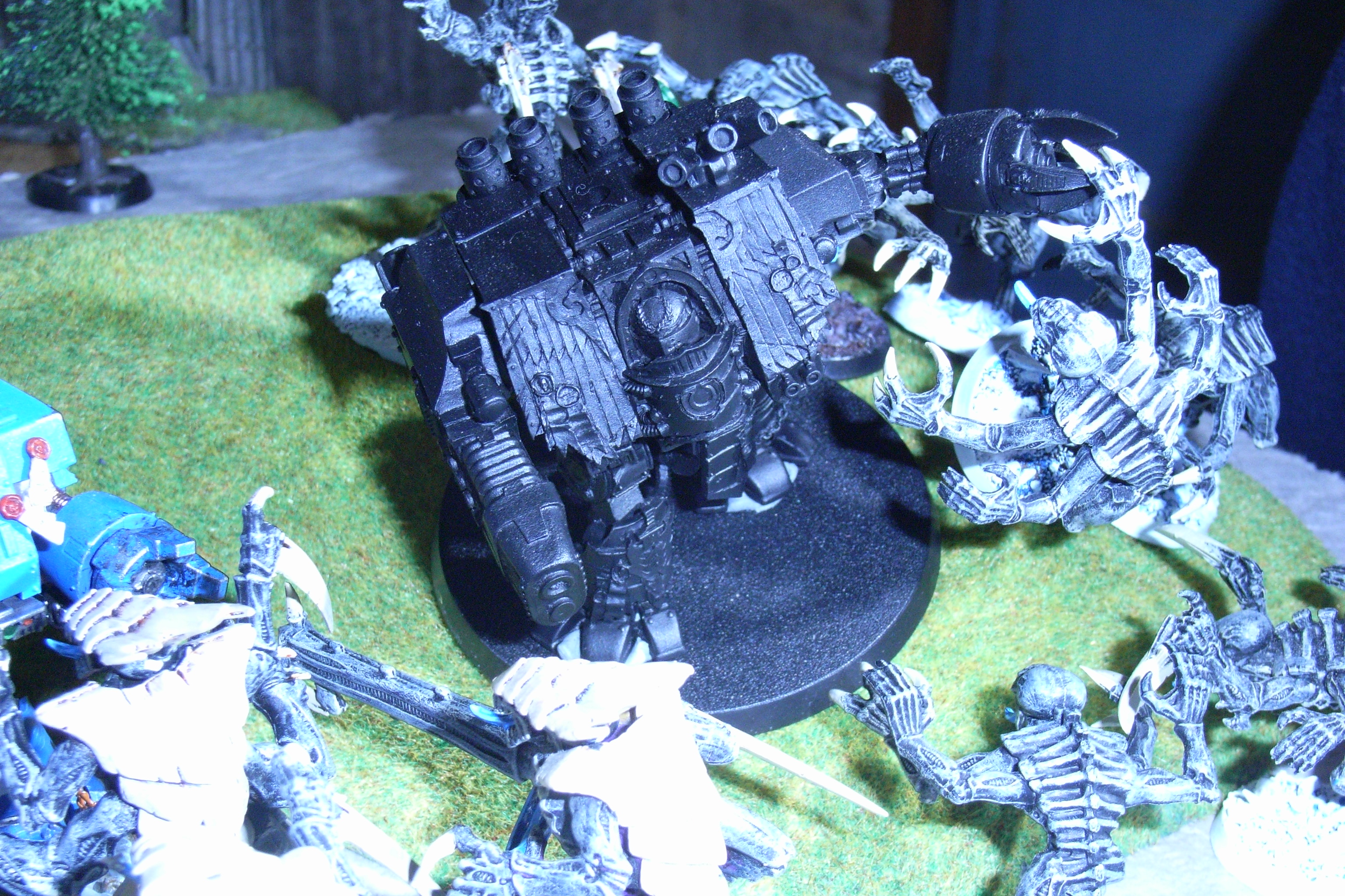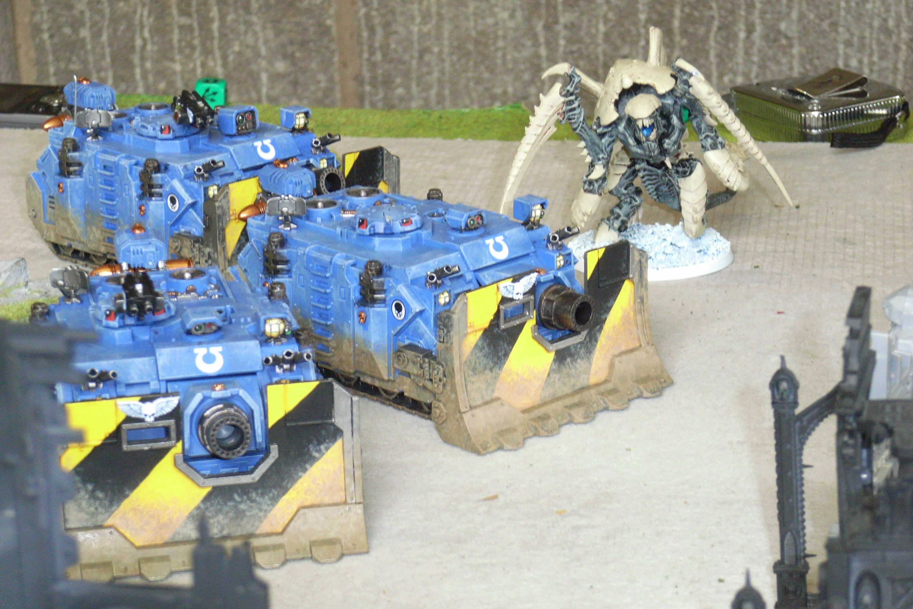 Thanks excretos! yeah it was turn 5 and i was in danger of losing that objective to the nids, and was racking my brains for something to do quickly, when i remembered that i could tank shock!  so the landraider was put into top gear and charge!  it was an all or nothing last dash to contest the objective and i hung on just!  This scene and several others in the battle like it proved to be legendary moments, stuff me and wannabe will talk about for years i think?