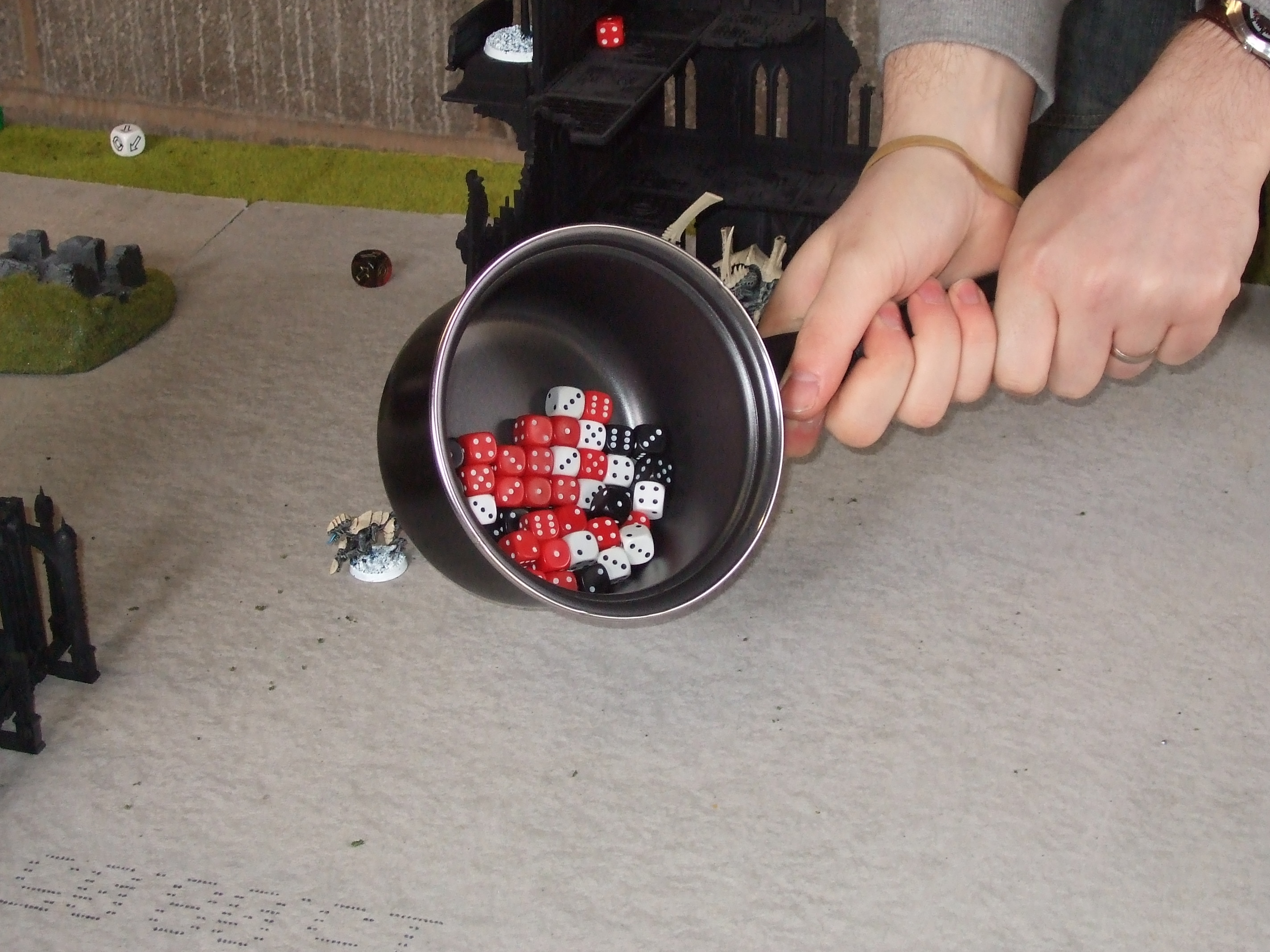and yes, the dice being rolled in the pan was very funny, and that was just the 'to wound' dice?