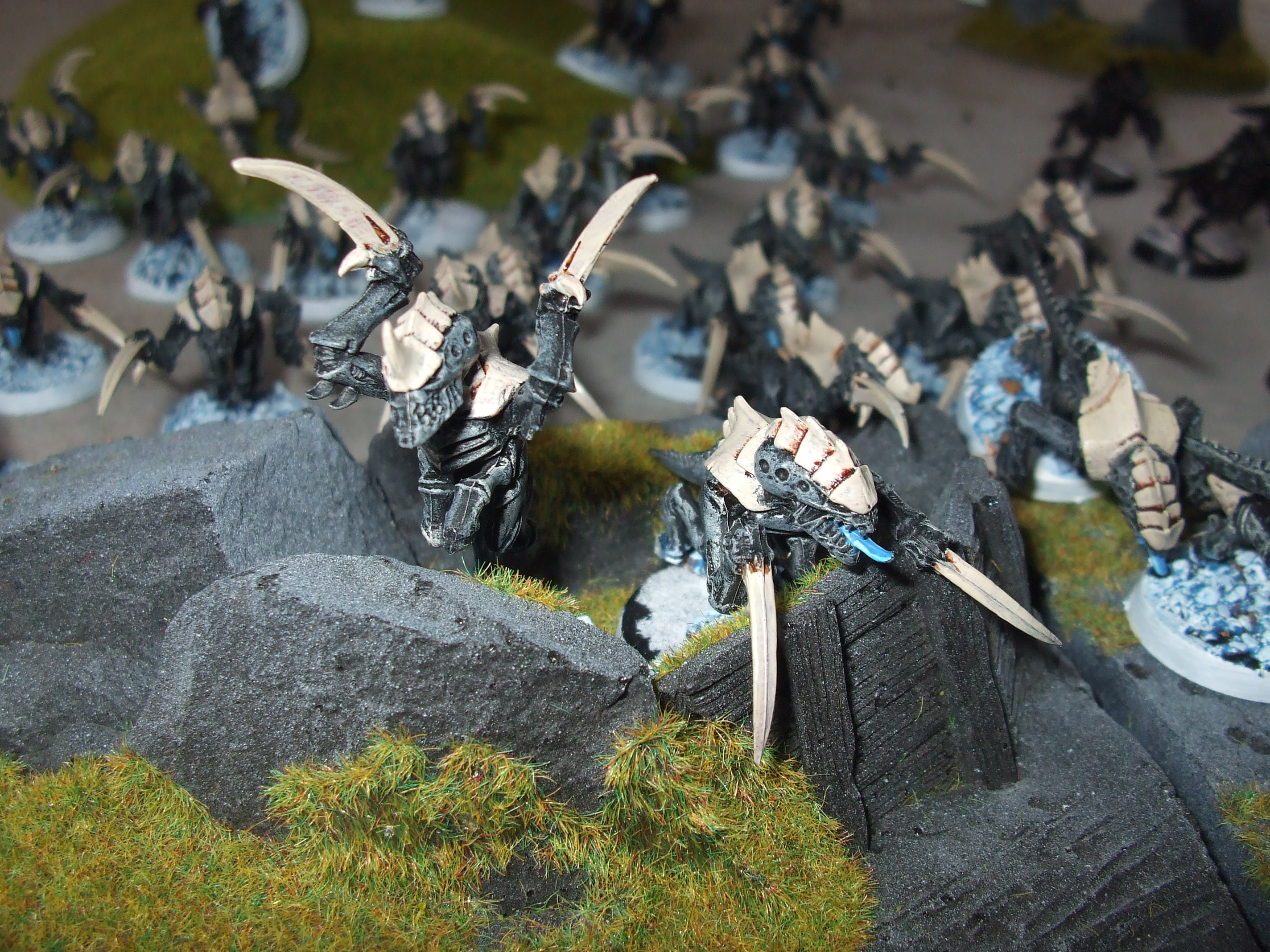 In regards to your query JD, I think Heirodules can be hit or miss in terms of ability. They are super fast considering they move 12" basic, and depending on how much you use their shooting attacks they can either fleet 1 or 2D6", which equates to a tasty 30" move in one turn if they max the fleet rolls and assault. I'd recommend the barbed over the scythed though. It only has two less basic attacks but makes up for it with two bio-cannons, each getting 6 shots each!. The scythed has a nice bio-acid spray (hellstorm template), but I find the barbed still does more damage during a game.