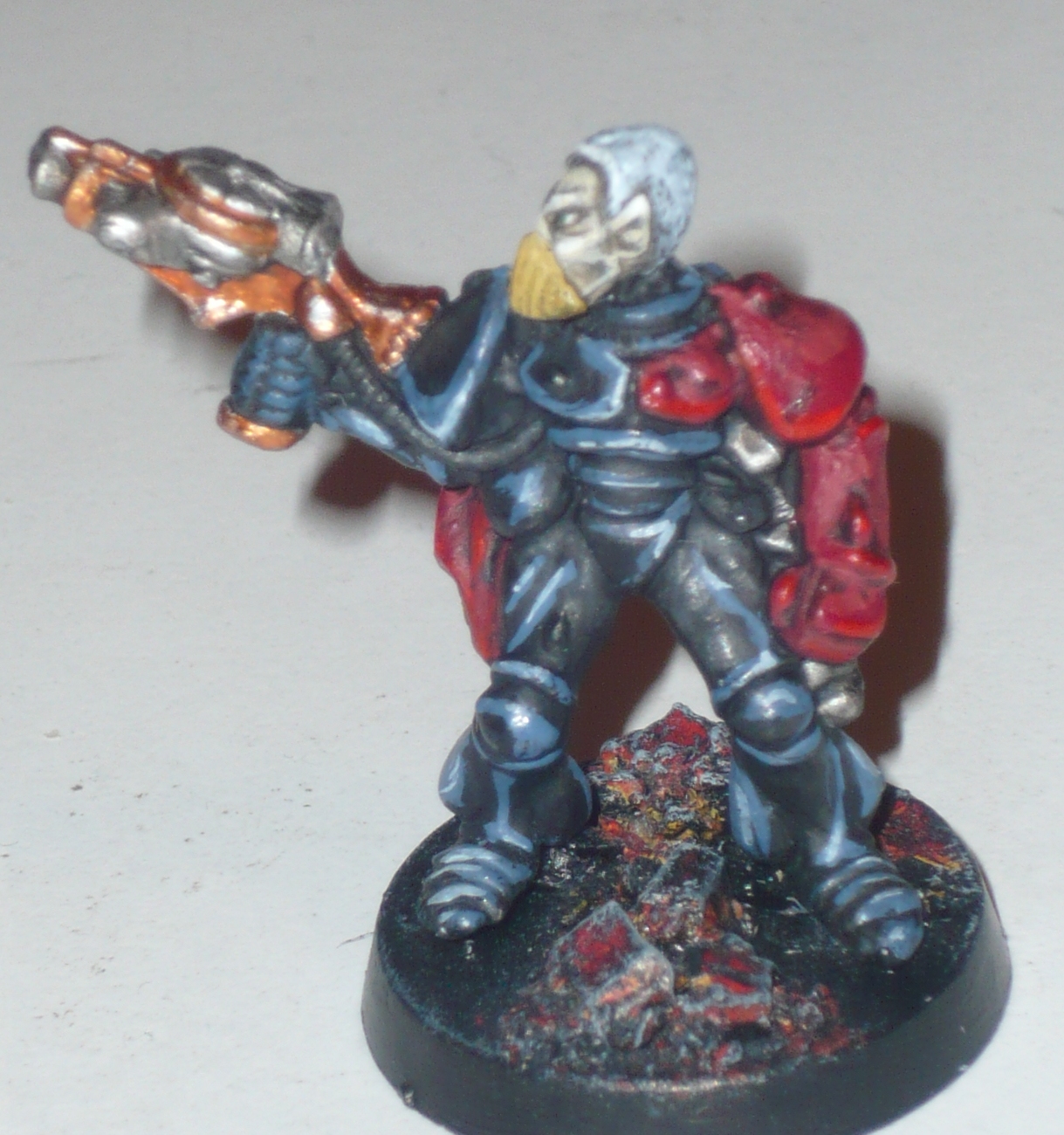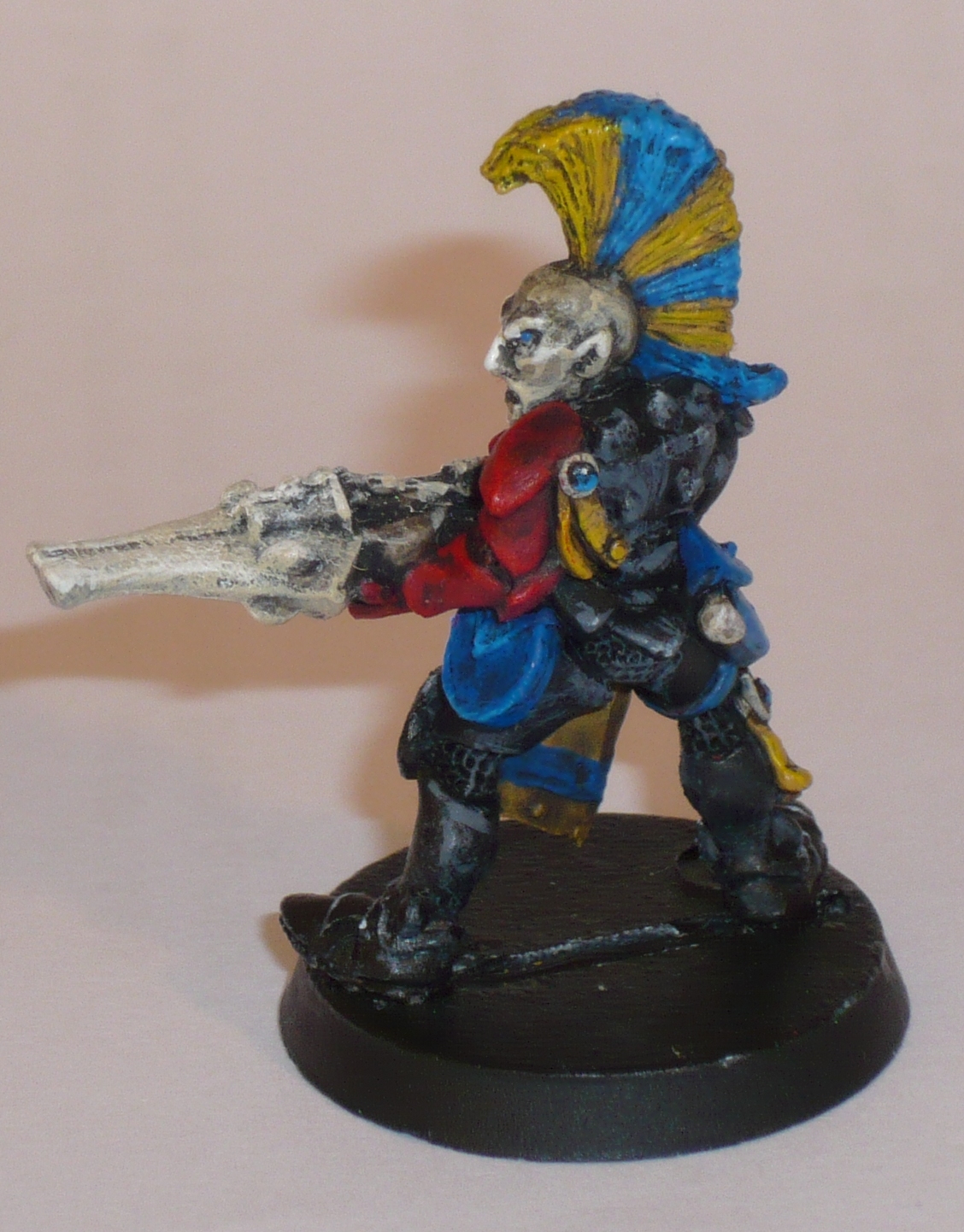 I should point out that he is a pirate originally from Altansar Craftworld, so the skin colour and grey hair are deliberate, and I am very pleased wit the result.