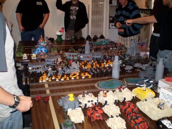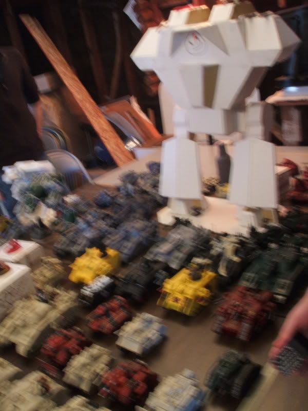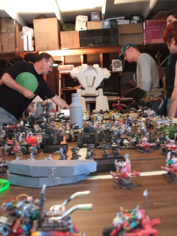 And, most importantly, unless you want to seriously annoy your opponant, do not take 4,000 points of pulsa rokkits. Read the rules for them. Wow, that was the most annoying thing ever. But in all fairness, without them the other team would not have stood a chance. We outgunned them on a ludicrous level. The pulsa rokkits kept about 2/3's of our army from firing for 3 turns. They basically glance everything within 4D6" of them D3 times, and cause troops to go to ground with no recourse of any kind and take 3D6 wounds. And, they have 2 structure points each and can explode apocalyptically when they go. They ignore anything other than a destroyed result on the damage table so they are a bitch to kill, and they basically can not miss. If you take 18 of them, like one of our opponants did, you can alpha strike and on a crowded table like ours was, each one will hit several units and keep them from doing anything. It is a very good tactic, but makes for a really unenjoyable time as a lot of guys entire armies did nothing the whole game but watch their units sit in one spot and slowly get whittled down until the were destroyed with no chance to fight back. Its no fun to not participate in the game.