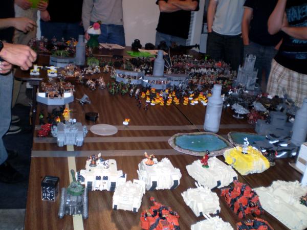 I still say there would have been alot more action had the other team not taken the Chaos Conclave. All those Chaos Marines and Orcs that just sat around bored would have gotten deep into the action if those 8 droppods and full Blood Angel Lucifer Formation had landed safely not to mention all the flank marching tanks that ended up in the wrong corner of the board. Plus with the pulsar rokkits keeping all the tanks stunned that mass of terminators in landraiders barely made it a crossed no-mans land by the end of the game. Cassius and about 10 TH/SS terminators had to clear the way for the Stormlord clearing the objective off.