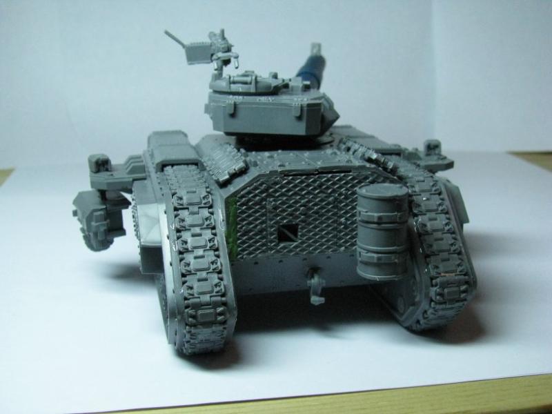 You don't happen to have any photos of your chimera/russ's rear end, do you? Looking at your WIP thread I see you placed a barrel near the rear hatch. I'm trying to figure out how I would do the rear end of the vehicle. I might pester some of my IG and/or SM playing friends for sentinel and dreadnought exhaust/engine bits and use them to cover the rear hatch area if I went with a straight chimera hull + bulked up russ turret. I'm just worried that using a chimera might make it look a tad small for the awe inspiring look GW attempts to give most of it's tanks.