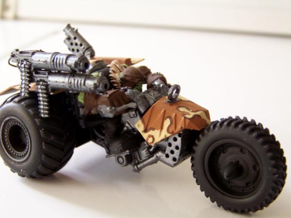 I like the camo a lot, but the big black tires would really benefit from some weathering powders to give them that "been driving in the post-apocalyptic wasteland" look. Nice conversions, too!