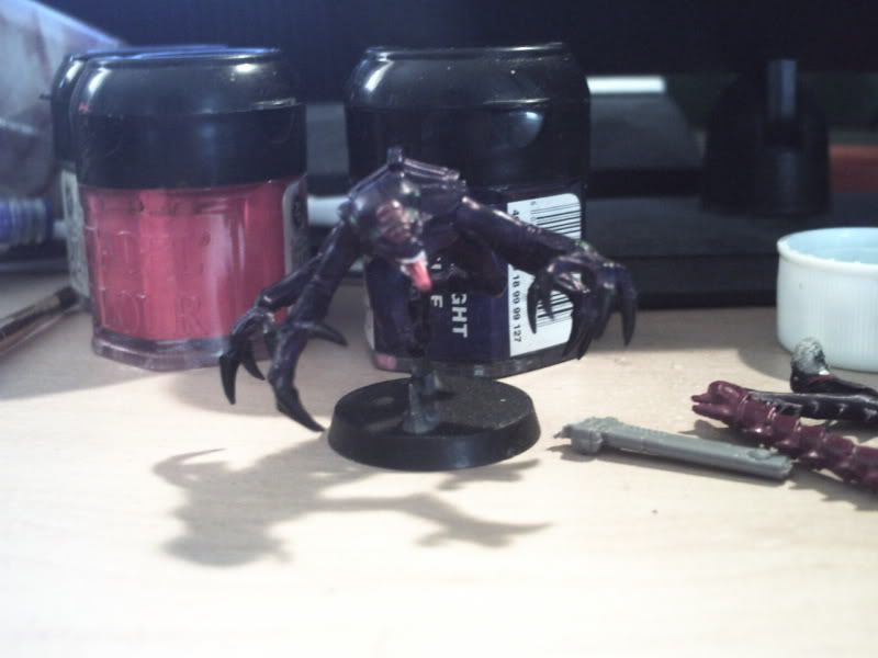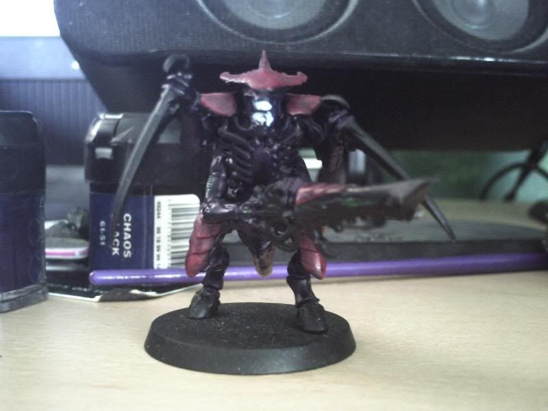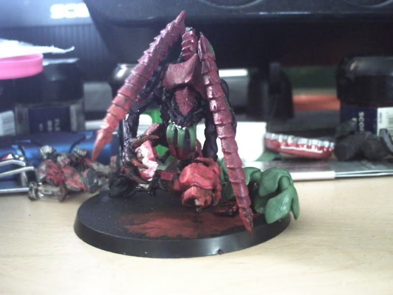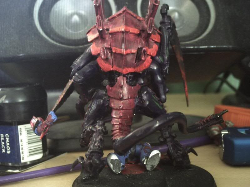 Not bad though! Keep it up! I might throw a light red wash on the carapace to try to blend the reds together a little more, but that's just me.