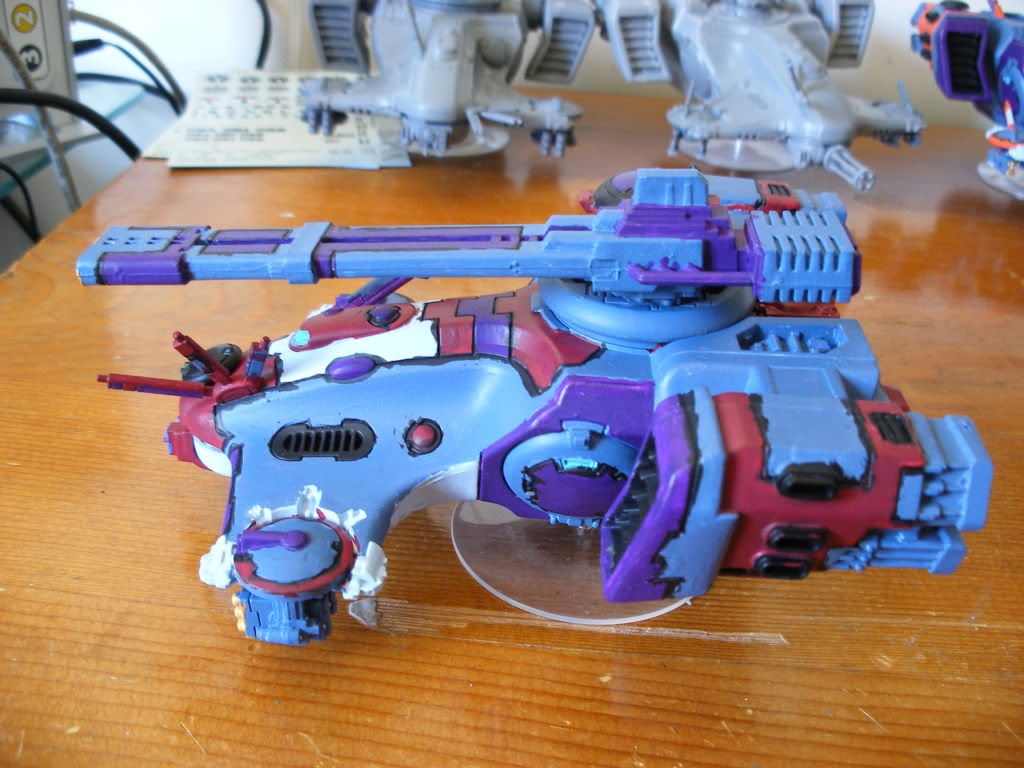 First thanks for comments and constructive criticisms. I will look into getting one of those pens and will get some finer paint brushes. I have the black wash and will try it for the lines. I realize that my choice of colors is a case of one where people are going to like it or hate it. The reasons for the colors are a couple, one to semi match my dice that I use, two to have the different colors for the FOC slots but still have a overall scheme for the army, and three I like to use colors that I do not see a lot of at my flgs. I see a lot of blacks, greens, and browns. I have never been an artistic person so I do not know a lot about color theory and I will look it up and educate myself as suggested. That said, I am keeping the color scheme because I like and I have painted two tanks with the scheme, so I feel committed to the scheme. Once I have the next two vehicles painted (an another troop devilfish and a sky ray) I will work on cleaning up all the vehicles, before moving onto the battlesuits. The winds have died down so I should be able to prime the devilfish today.