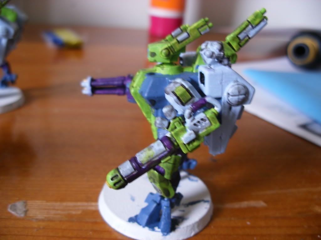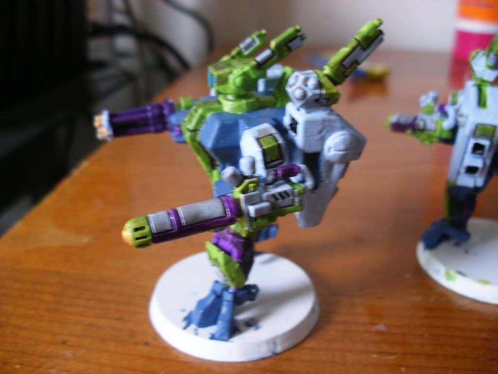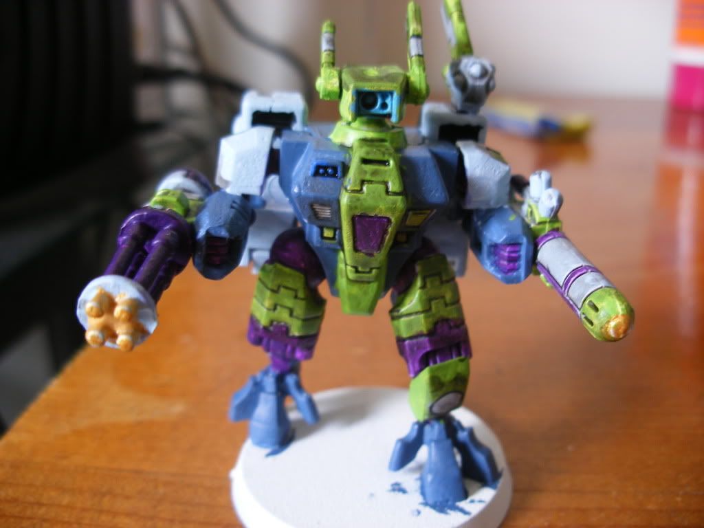 Don't take this wrong or anything, I actually like the colors, but at first glance (due to all the colors separated by black lines, but still mashed together in strange and interesting configurations) all I could think was "wow, a tetris army". I suppose that should be a "tau-tris" army