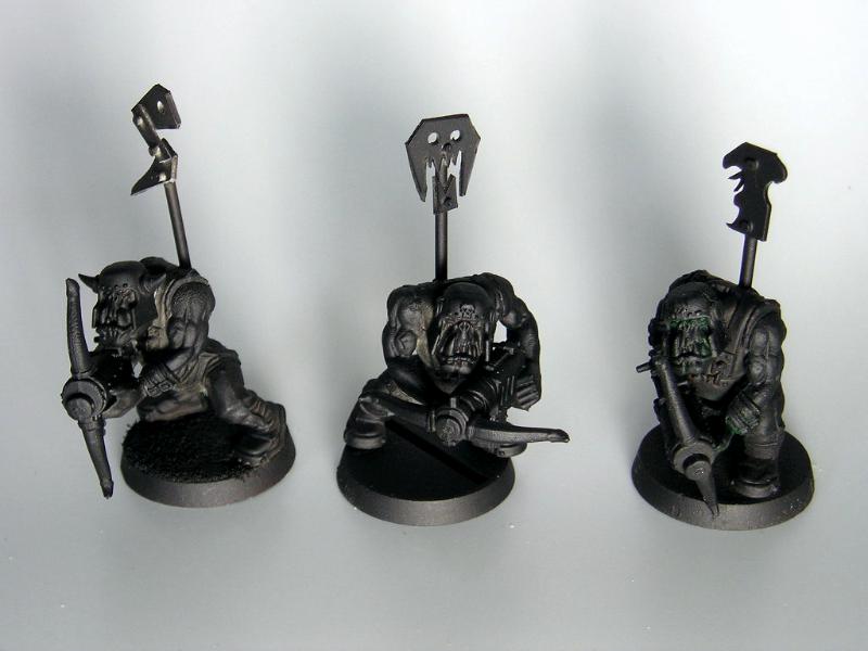 I originally thought that the goblin bows "welded" to the shootas would be a go way to show the Snakebites clinging to the old ways, but now I'm not positive. So, should I scrap the bows, continue with them, or just mix a few into the shoota mobs?