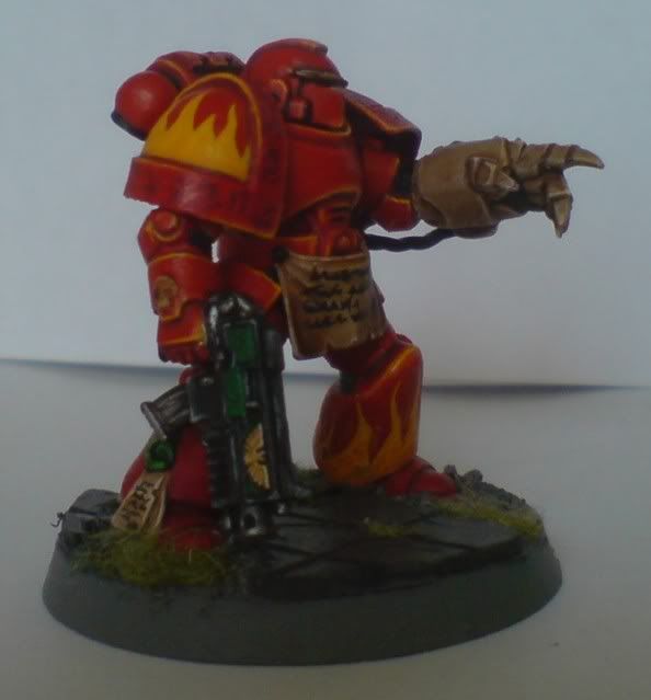 This is a very interesting colour scheme, with all the flames on it. Not a common traitor-legion. I really like it.