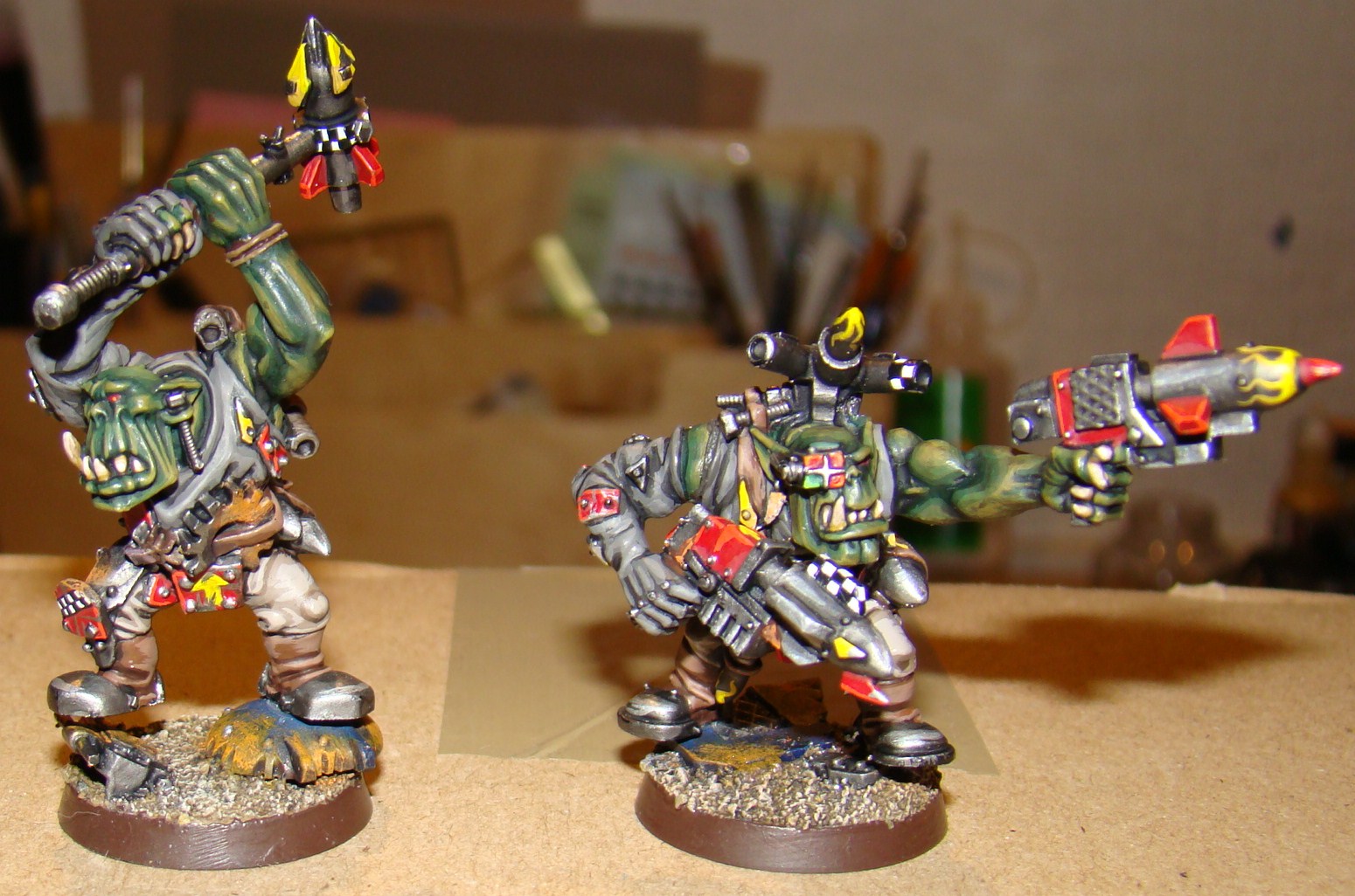 looking good, I love the piece of tank track on the back of the pistol tank busta. It would be cool to add that to shoulders or shins. I had one newb question though, is the ork with the rocket stikk raise above his head considered a melee unit? It looks as if hes about to swing that rocket towards a target.