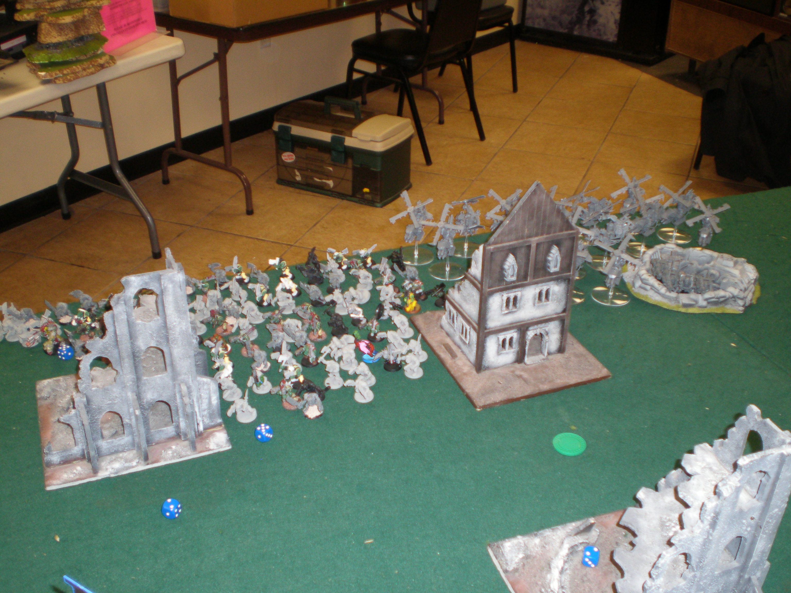 Anyways getting players to commit to today's game was a bit harder than I thought it would be. Seemed like everyone had plans, but we had to start somewhere. 7 players showed who were able to field at least 3000 pts each. Not bad. I thought I might have to play so I threw together some Deffcoptas on a dare, 60 to be exact. I had them from my