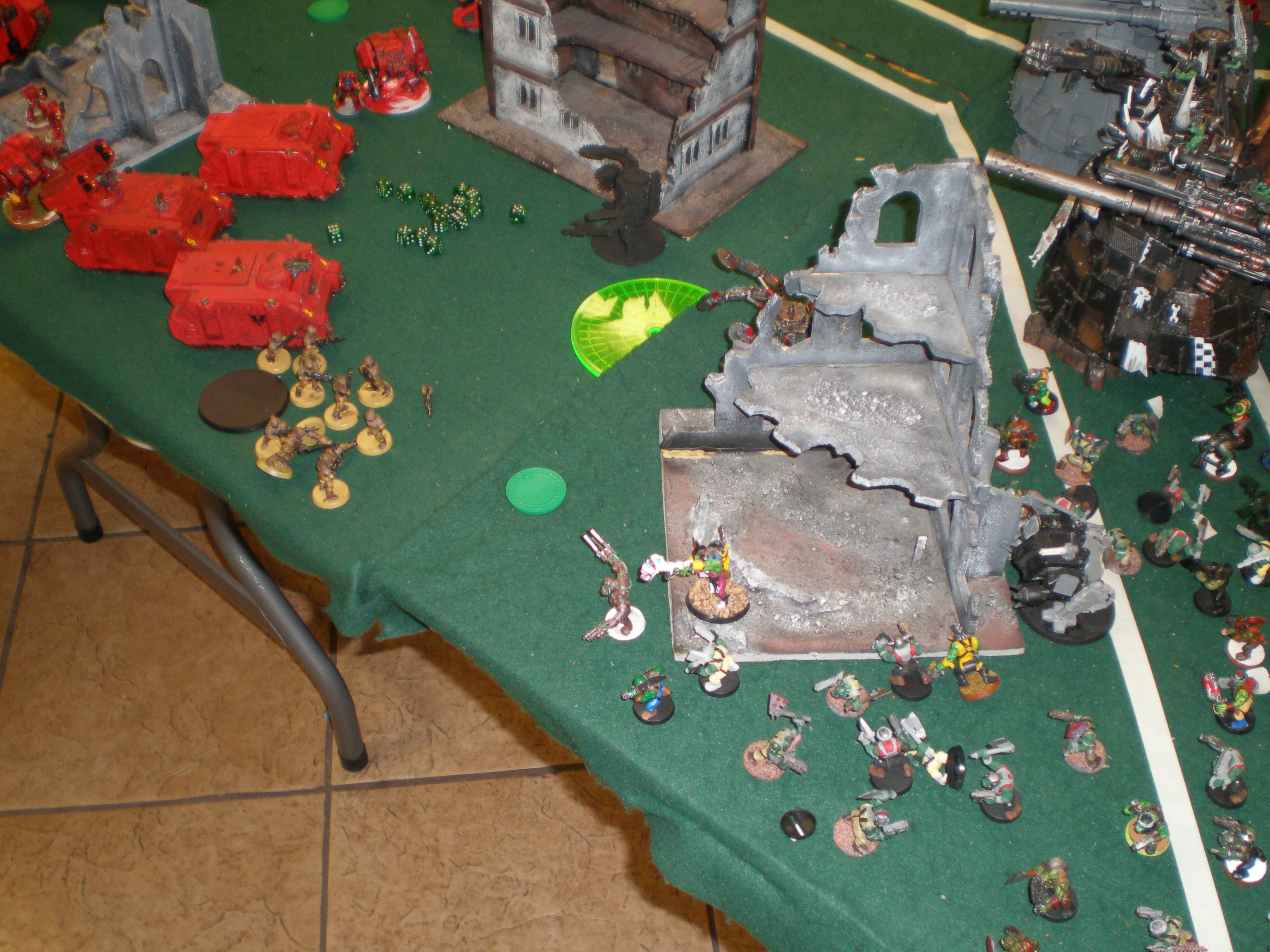 ap 4, 10" blast marker) every turn, as long as they controlled ruin. Ork special rule for game, we could bring back 1 destroyed unit per turn, moving it on the board from either of 2 road endings. This may of been too much,