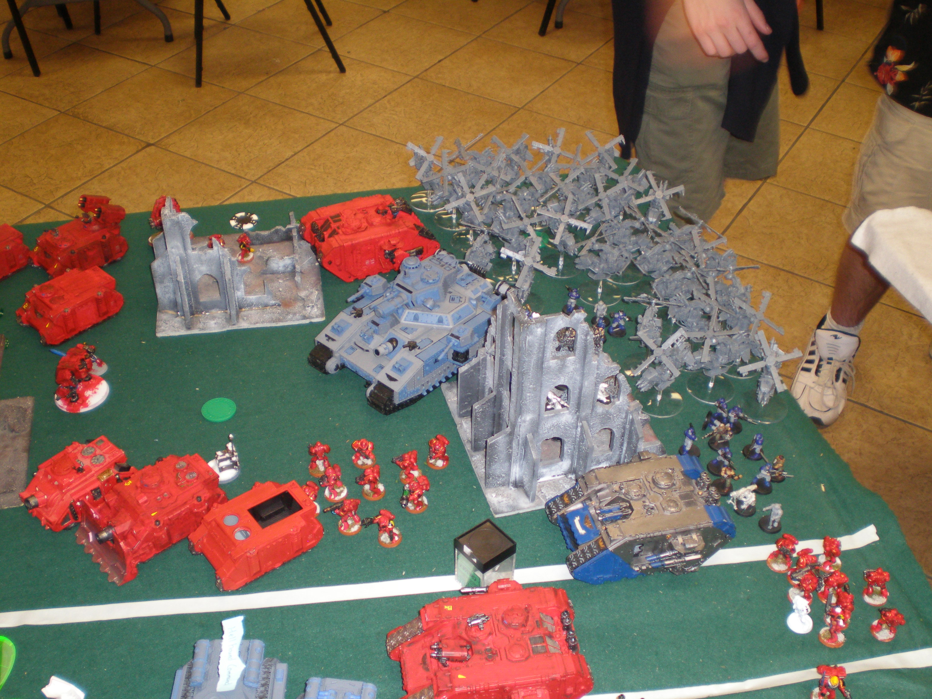 Turn 3+ on is all foggy. Sicarius unit got shot up pretty bad. We beat them down to point of quitting. We contolled 4 of 6 objectives on Main board and 1 on Mountain, rest were contested.