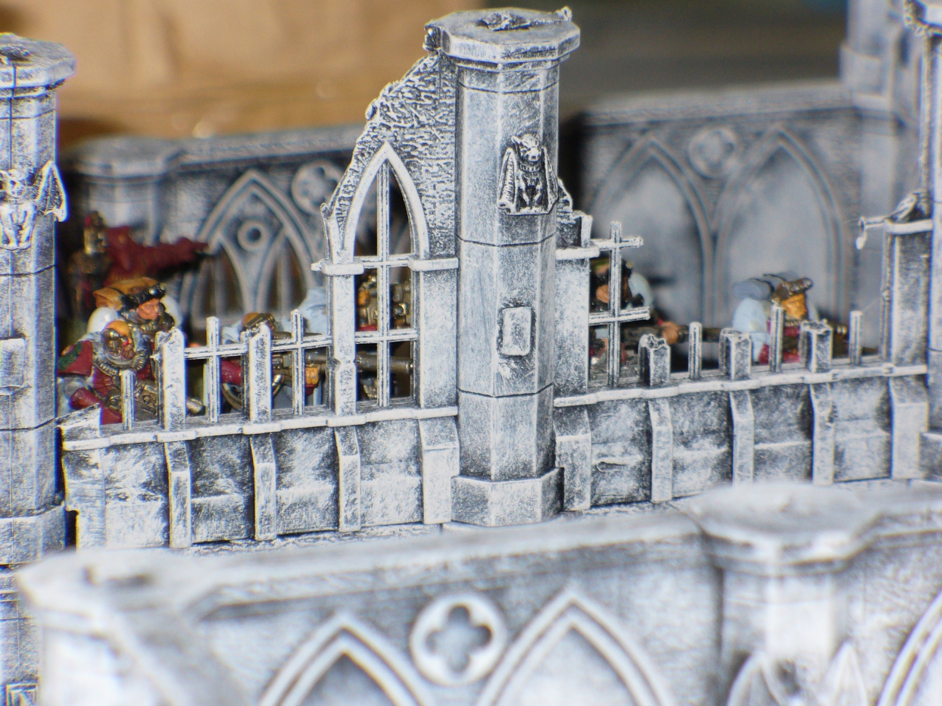 Wolf Lord Magnar watched his wolves advance into the rubble and ruins that had once been the city of Corsus, lead by Ruin Priest Celious and the Venerable Dreadnought Woluff, the grey of their armor blending subtly and almost perfectly with the ash covered ruins. Magnar grinned at the Wolf Guard Ullif leading Pack Claw that accompanied him, his long white canines. It is now time to show those crimson armored fools what happens to those who fire on the Sons of the Great Russ! The battle for the city had been going on for months and multiple forces had become drawn in and embroiled in the massive confusion. It was this confusion that had lead to the current confrontation as a pack of Blood Claws had inadvertently fired upon and injured some of their erstwhile allies and rivals from the Crimson Lions Chapter and two of the Blood Claws had been cut down in the return fire. Blood had been spilled on both sides and now the engagement had slowly escalated as accusations of carelessness, stupidity and even treachery had been exchanged. The Space Wolves have never been known as reasonable and their impetuousness could not be checked now. So despite frantic vox traffic from Imperial headquarters demanding both sides to stand down, the Space Wolves advanced on the Crimson Lions position determined to show these upstarts exactly what it meant to cross a founding chapter, while the Lions carefully moved into position under the watchful eye of their Chapter Master McAlister, eagerly awaiting the opportunity to show what a lion could do to a mangy wolf.
