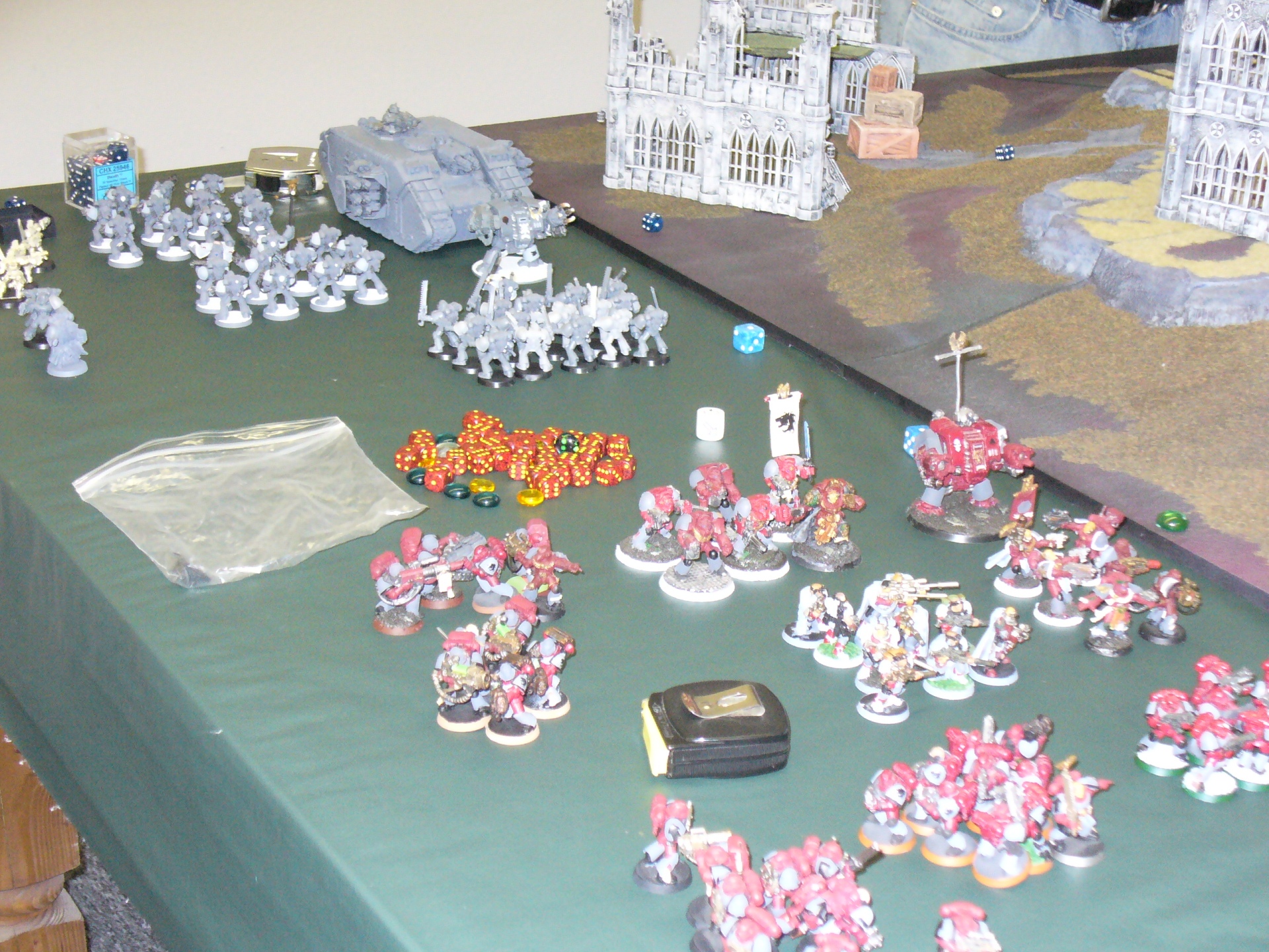 Turn 4 is the final turn as we decide to call it after that. The Sternguard and Squad Quinlan assault into the back of the Grey Hunters attacking the Snipers and with the Chapter Master in tow after something like 42 attacks the Ruin Priest stands alone although he manages to kill all of the Sternguard over the course of turn 4. The Terminators join in on the fight in the middle between the Ironclad and the Bloodclaws and several Bloodclaws die and it seems like that fight will turn against the wolves now. On the far left the Wolf Lord annihilates all but Sergeant Aamon, who falls back from combat denying the point. Final score ends up being 5-1 the Crimson Lions defeating the Space Wolves. Here are some pictures from the battle.