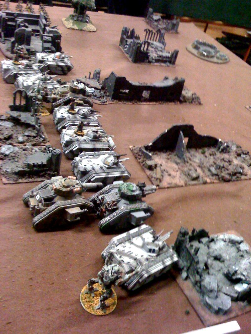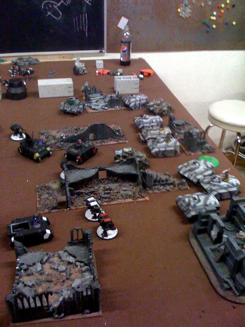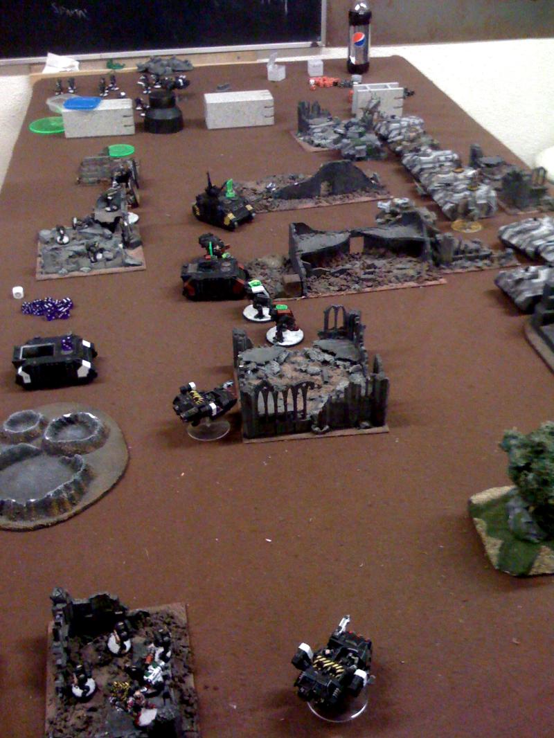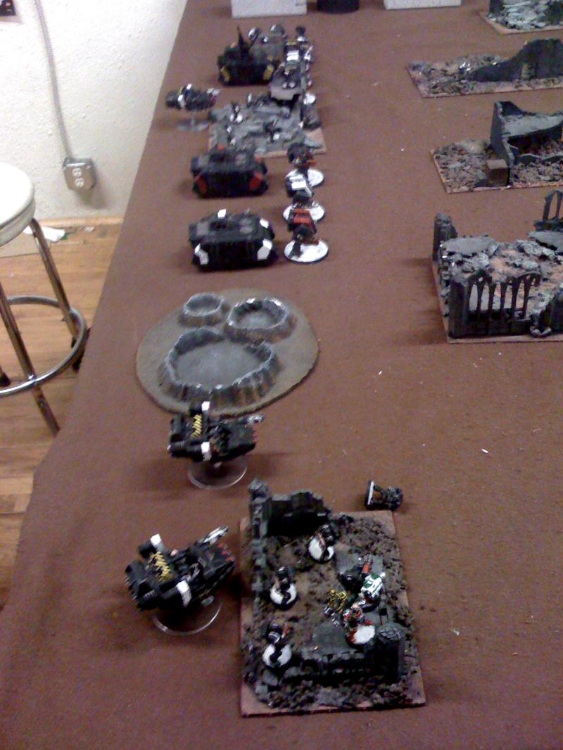 I won the role and chose to go first. I basically just made a wall o tanks. Demolishers towards the middle, command squads in the middle, sentinnels on the flanks, and normal infantry squads on the flanks.