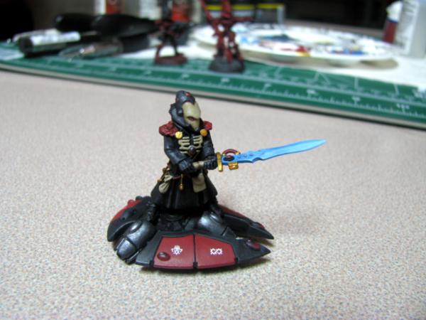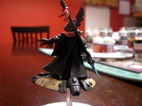 I use the model I made back in 2nd ed, were he fights from the back of a vyper. It only has twin cats (like a bike) and the platform and seer base are magnetised to allow for me to field him on foot if needed/instead.