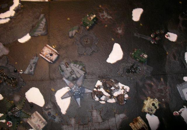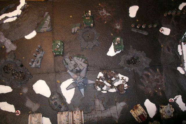 An excellent turn for the space marines, but looking at the table, it shouldn't really matter, i just clean up that 5 man unit that charged the psyker chimera, take a couple of turns to kill off the new sternguard unit, maybe even one turn will do it.