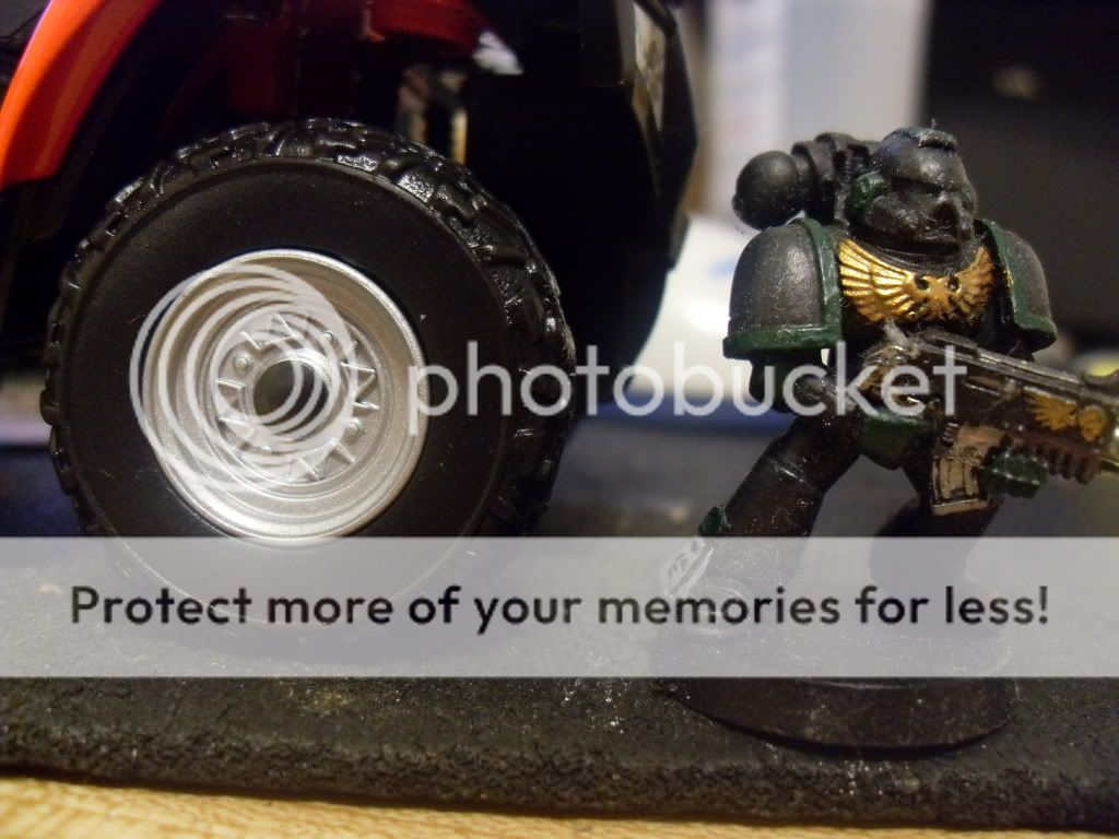 Maybe I should have clarified, I want it to look similar to an LAV, but I want to convert it from a chimera. I don't want to risk people hitting the roof in a tournament environment when it's not obvious that it's converted from a GW model. I've noticed from my experience, that GW vehicles are very large and squarish compared to a to scale model of a real combat vehicle. I'm thinking with these wheels it will be the same height as a normal chimera, which is important to me. (avoids "modeling for advantage" complains). The tires only measure 1 3/8". Although, they may be on the large side, won't know until I start hacking on the chimera which I should get this weekend.