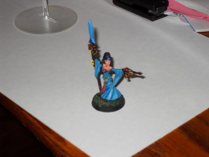While its not much of a contrast from the rest of my army the farseer ends up bring the most change and color.