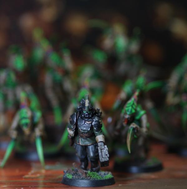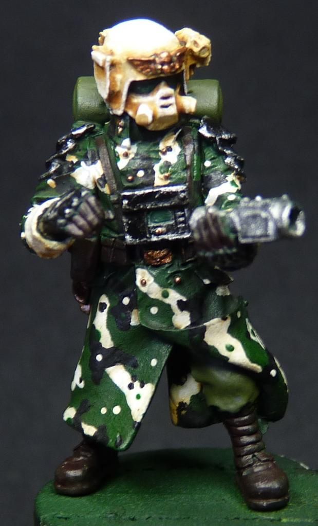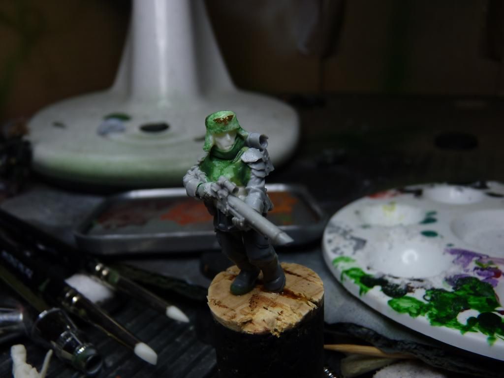 @Sheep - Thanks Sheep, i actually tried to do the opposite of that, chipping green onto the white, but the problem is that the effect gets ruined because the green over white is so bright compared to the rest of the green, i fear i'd have the opposite problem if i did white over green, with the white not covering the green well in one coat. Glad you picked up on the classic valhallan theme, you might like the infantry below too.