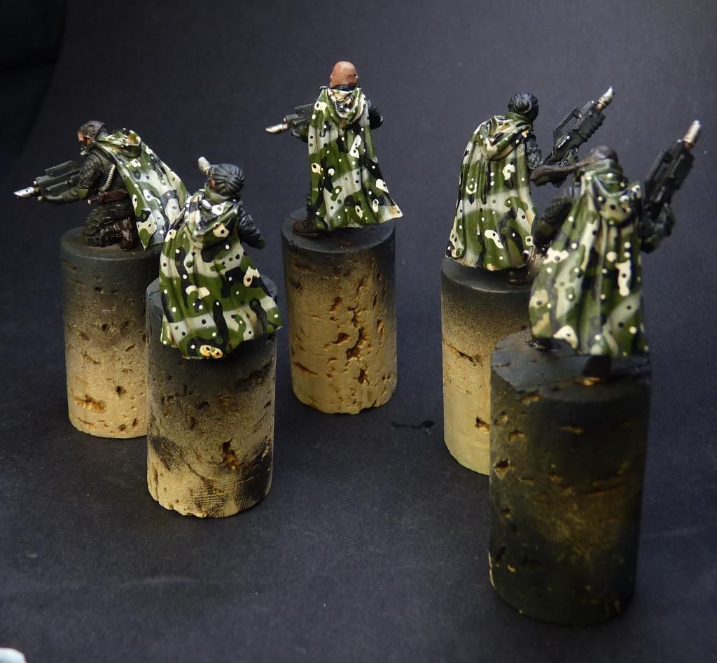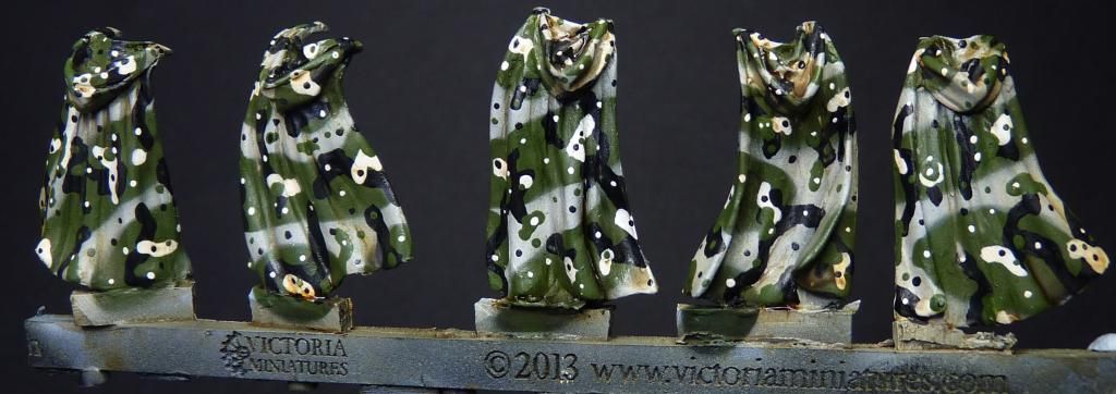 This (combined with me reading guants ghosts books again) lead me to buy and paint some camo cloaks from victoria miniatures (utterly fantastic btw), which I painted, and then combined with elysian bodies and various heads to make my version of ghosts.....the last pictures are where they got stuck paint wise, they have been sitting there 3/4 painted like that for over 5 months....