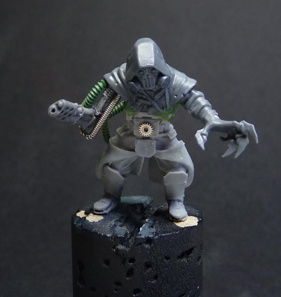 So this week I offer on the dakka sacrificial table the admech arco- flagellant style conversion all painted up. Keeping in with the bone and green theme I think its worked quite well.