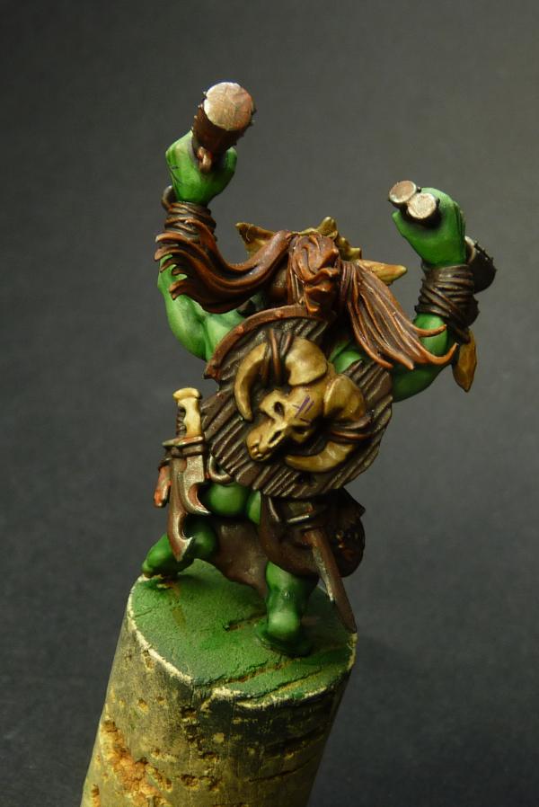 Before working on this guy I did a test run for the skin on a savage orc, I quite like it and finished painting him to add him to the band, anything brown and feral with lots of bone is welcome in this band: