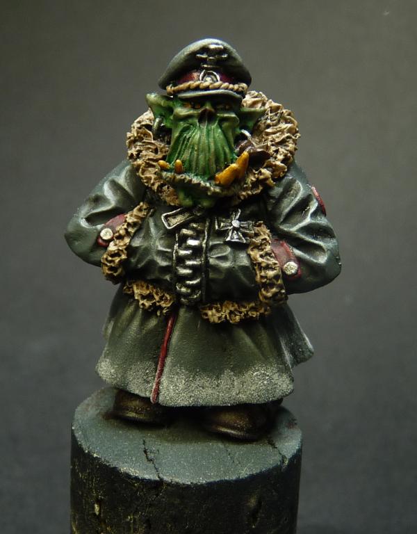 The second okr was then kromlech's kommissar model, which i have wanted to paint for ages now...on reflection, i could have done better, the face in particular looks a bit flat, but is probably just because I'm not used to the subtleties of green flesh!