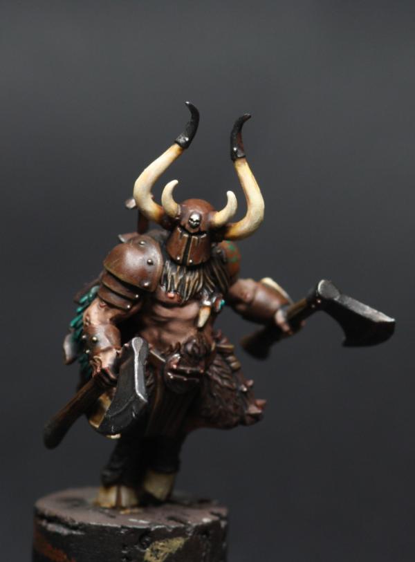And seeing as how if I ever played a game with them the most logical thing for them to prozy as would be minotaurs, here he with alternative arms and a big axe! Honestly so excited to paint him!