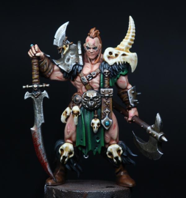 So today I have for you the darkoath chieftan from the silver tower set. For the most part I absolutely love this model, the one thing Im not a fan of is the stupidly large sword, he is cohan inspired, i get it, but lets leave out the cheese! So I swapped mine out for a darker looking blade, and personally I think it helps alot.