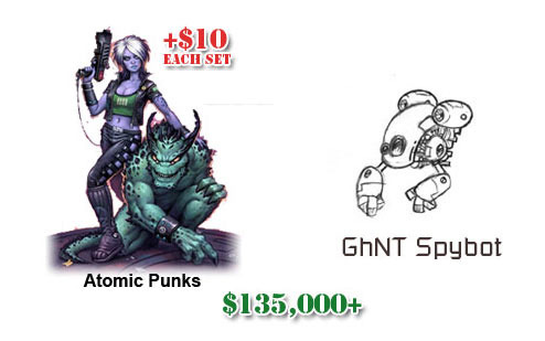 The relics are 4 old figures Patrick sculpted for his Morgan Keith line (and are now out of production). The first three have been added free to Bomb Kit ($75) level and above, and the fourth will be added free if we hit $125K (you can add them singley for $5)