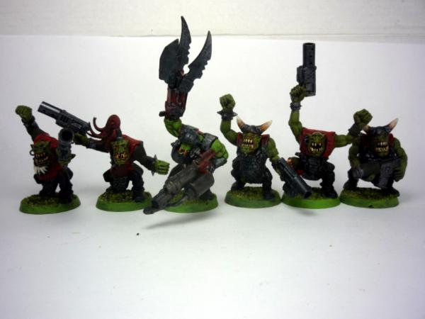 These are made from the static pose orc arrer boyz and 2 hw boyz. The nob is made from a nob from one of the fantasy box sets.