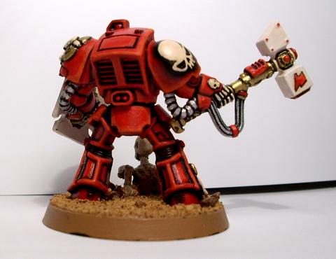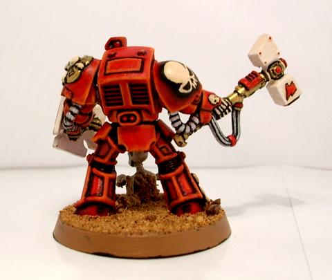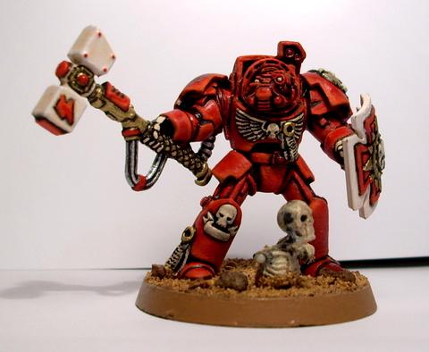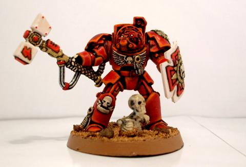 hmmm... maybe if i did the helmet in the same mixture of flesh/white, like the hammer head instead of red, that might make it POP a little better? I'll try that on one of the other 4 marines in the squad that i'm still working on, what do you think?