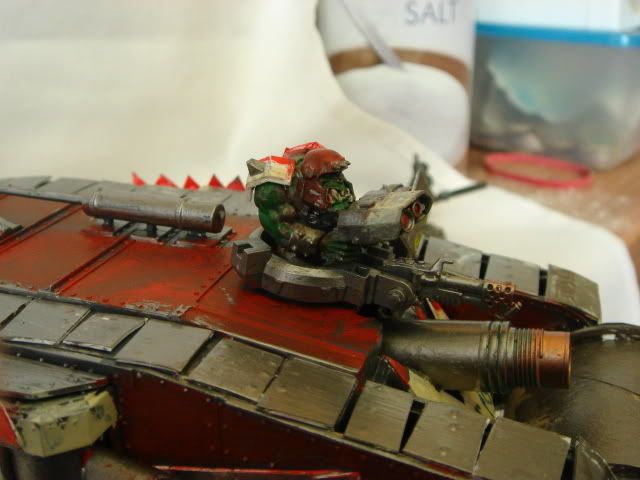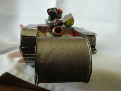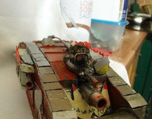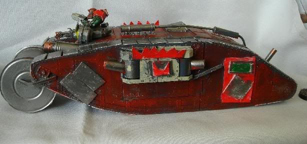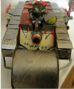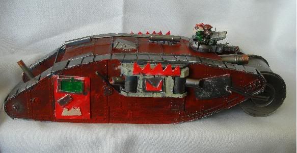 but its not a total scratch build i did use the body and a couple of bits of a mark 4 female tank but i did scratcg build the tracks,kannon,side guns(not the actual sponson bit)deffrolla gob,doors,glyphs and decorations.