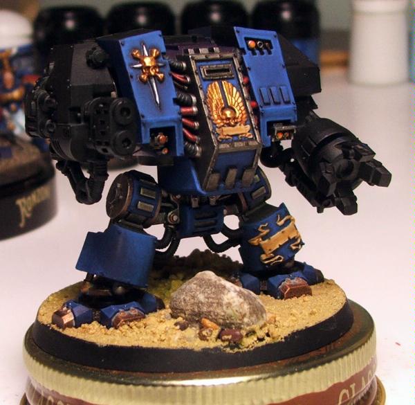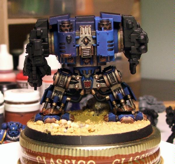 Here is the dreadnought as he is at the moment. I'm thinking of putting some weathering and battle-damage on him but I'm terrified of screwing it up