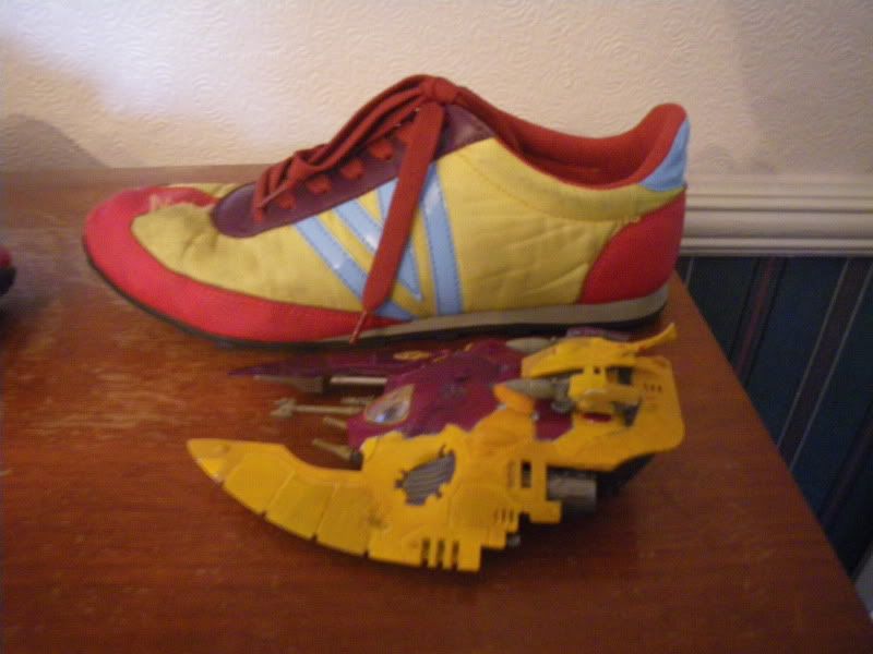 very bright,looking good,i say some free hand,high lighting, and some battle damage,ive really never seen battle worn eldar stuff so that would be really cool to see it would make your stuff stand out from the other eldar paint jobs