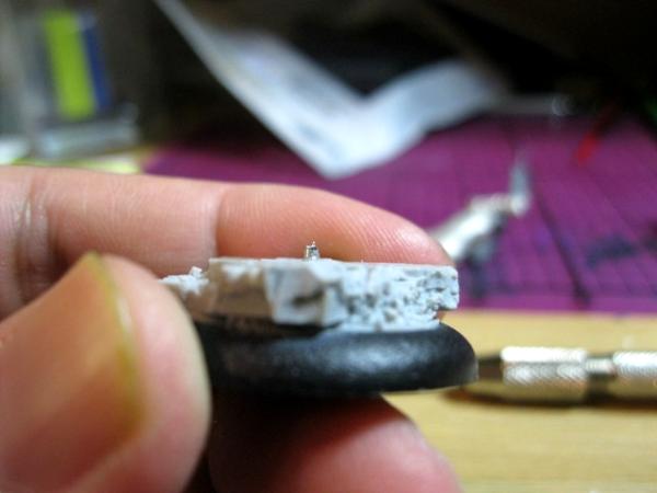 Yes... but I think I used the wrong bit to drill the hole in the model... the base has the pin on it and whenever I place Eiryss on it she just topples off of the pin. I'm going to have to fool around with some green stuff so she'll stay on... or I could make a different hole somewhere else under her.