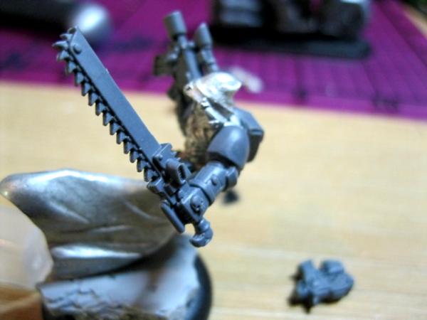 I strongly recommend you go back and reconsider the arm. I was loving this conversion until you chopped the arm off and slapped a space marine arm on. Totally ruined it imo.