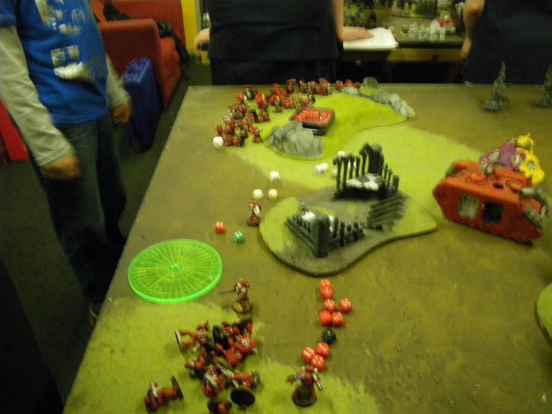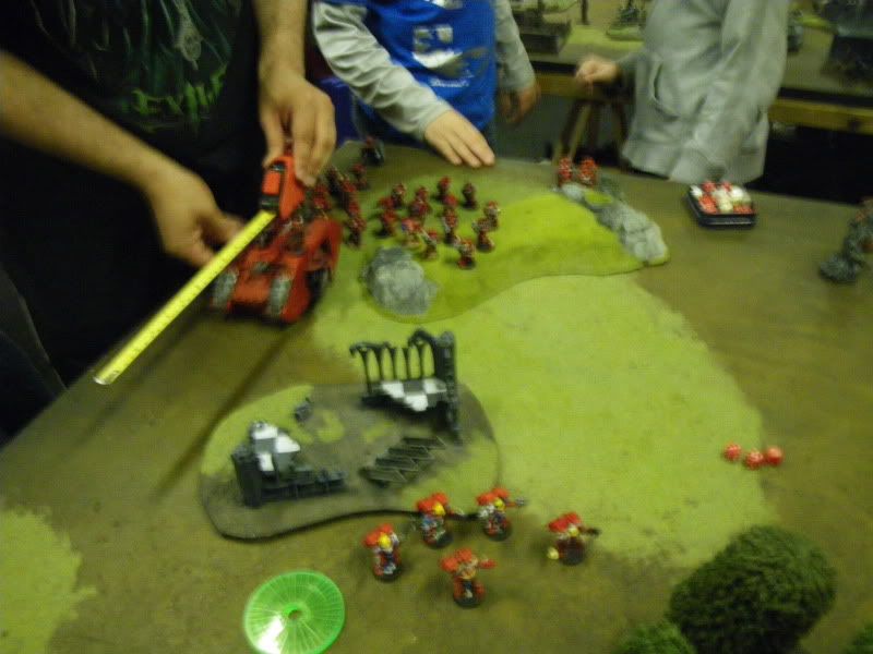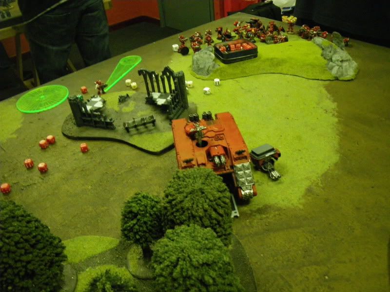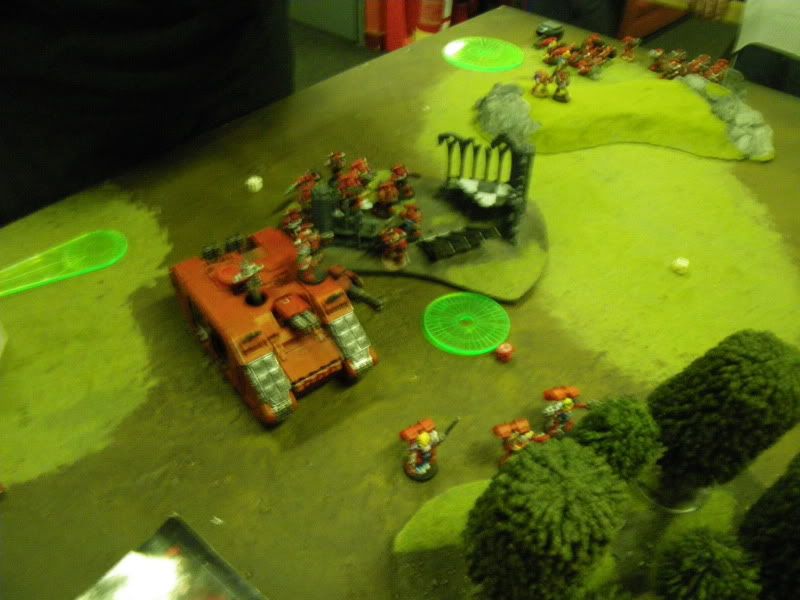 my opponent continues moving his units forward toward my lines. and also moves his space marines into cover, hoping to stop the lethal bombardment of armour ignoring weaponry I have.