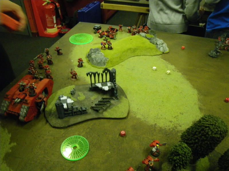 His landraider deployed ready to sweep down the side and his Assault Marines were also ready to sweep down the flank.