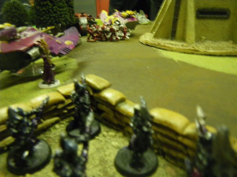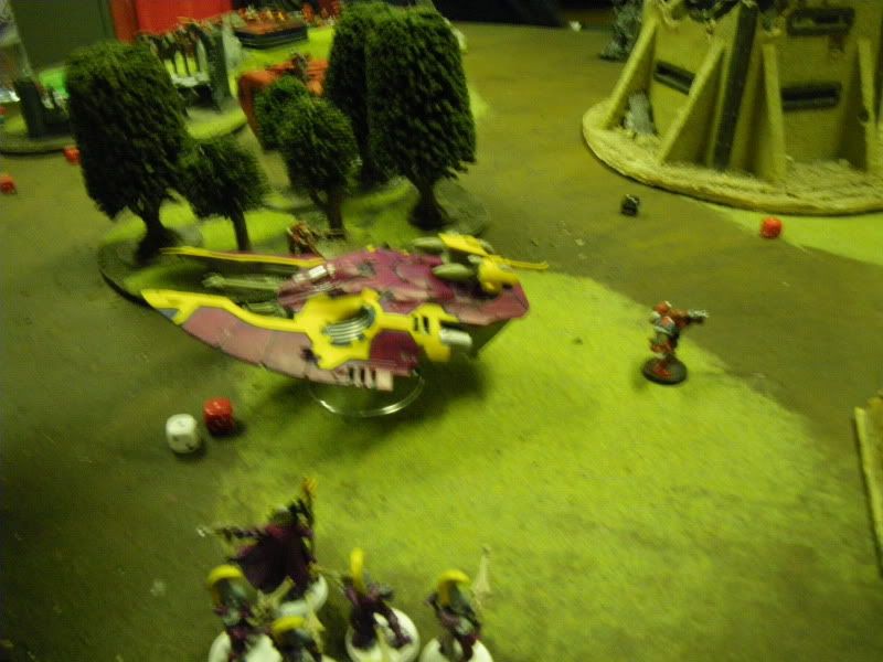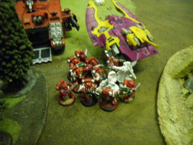 meanwhile my Dark Reapers shot through the wood at the assault marines, but cover saves meant that only two of the fiveman squad died.