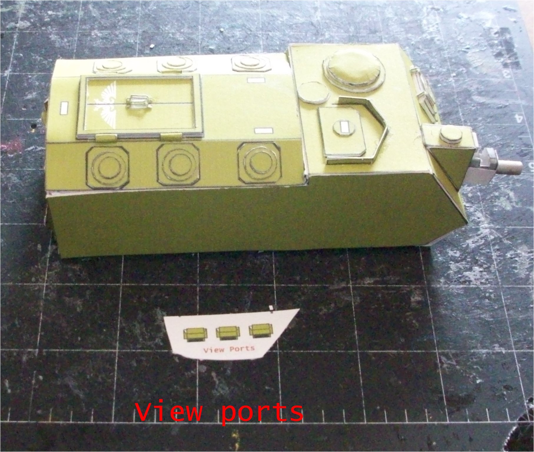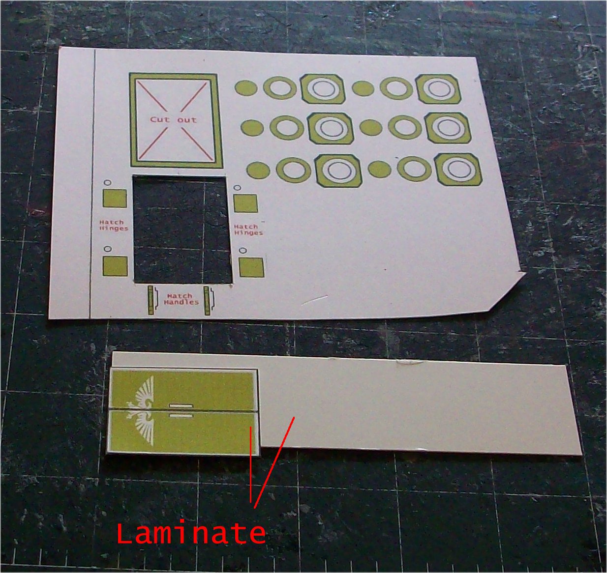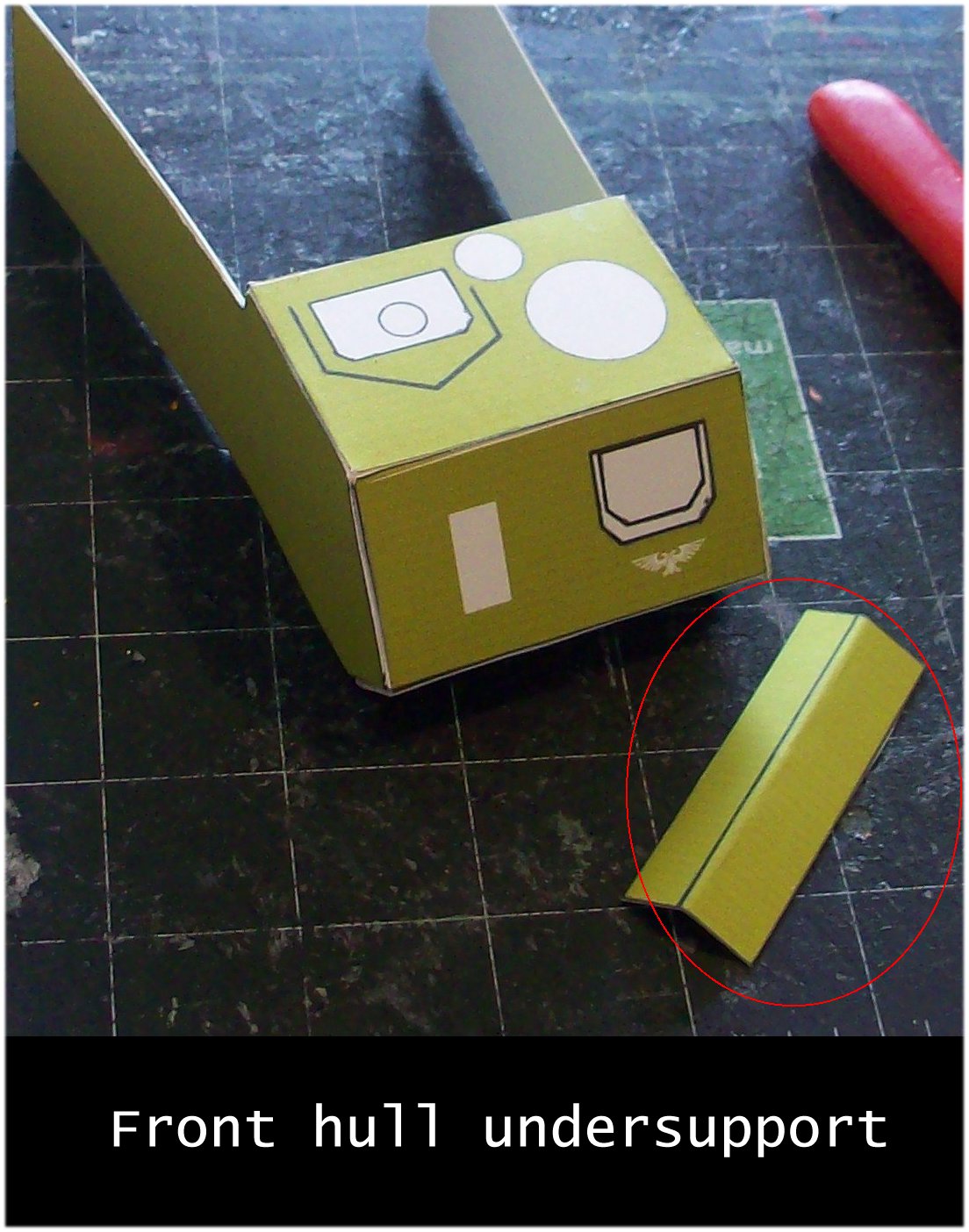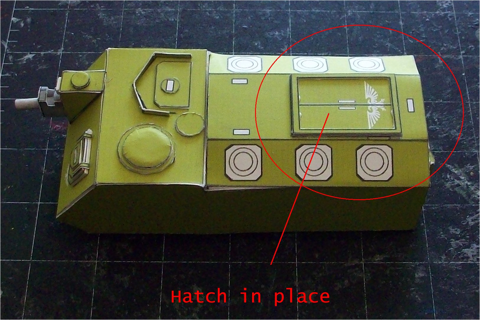 Here is the tutorial on making the hatches and front cannon. At the time of this build, the cannon casing was too short. There is an updated casing on the misc page of the plans. There are a lot of white edges on the model but do not worry about them now. later on in the build near the end, I will weather the Chimera and take care of all of the white edges. You can color them in as you go along or leave them alone until the end.