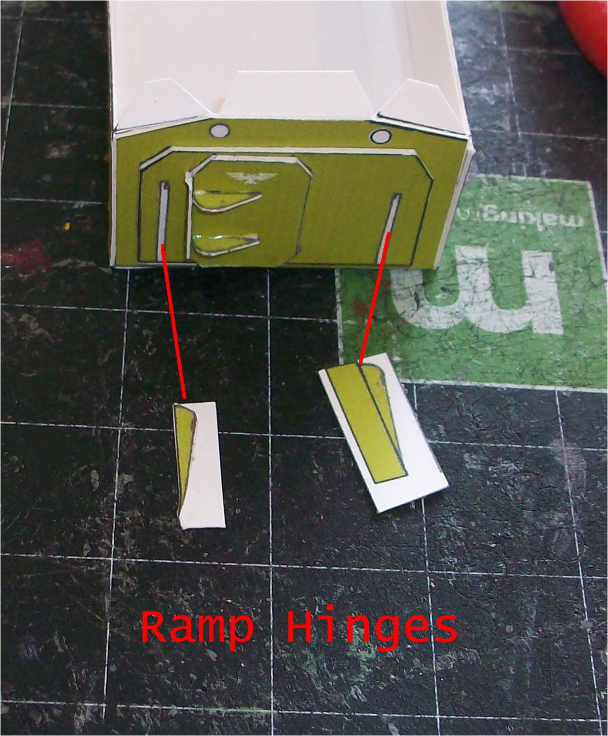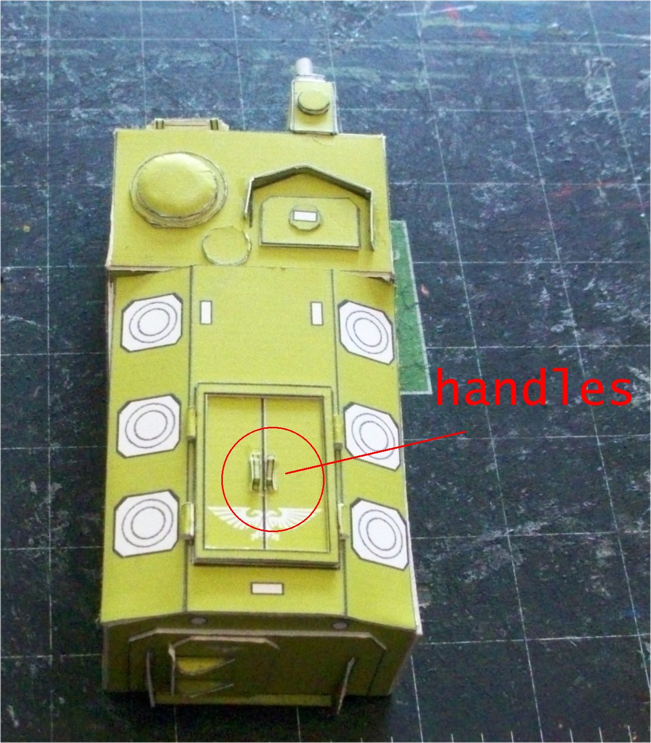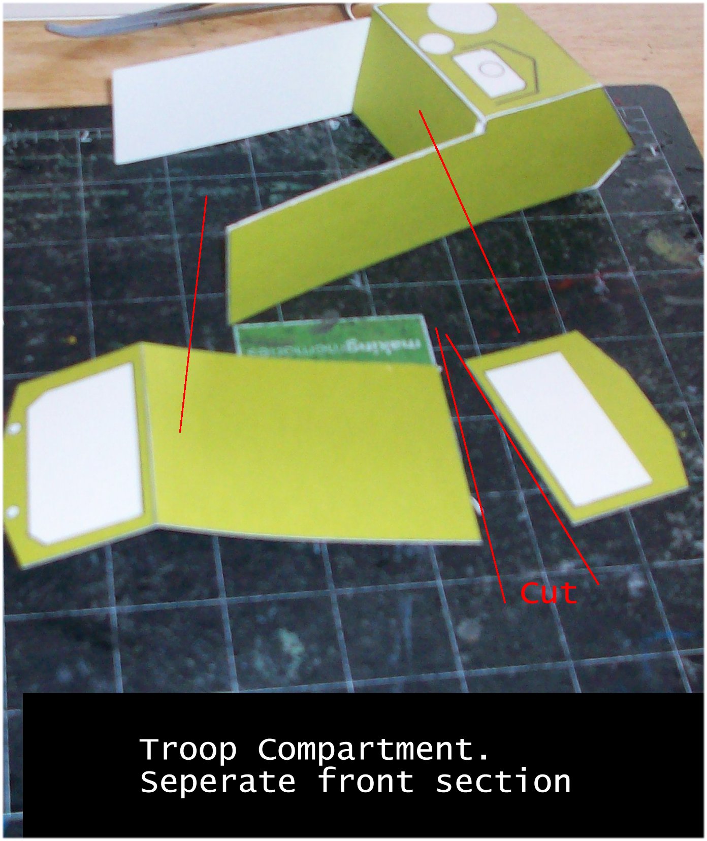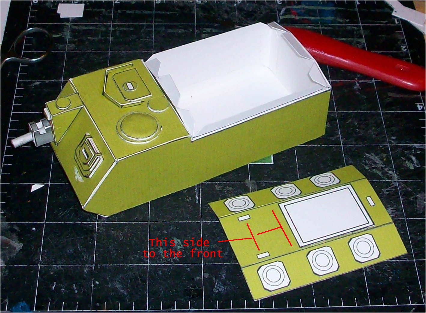 Here is the tutorial on making the hatches and front cannon. At the time of this build, the cannon casing was too short. There is an updated casing on the misc page of the plans. There are a lot of white edges on the model but do not worry about them now. later on in the build near the end, I will weather the Chimera and take care of all of the white edges. You can color them in as you go along or leave them alone until the end.