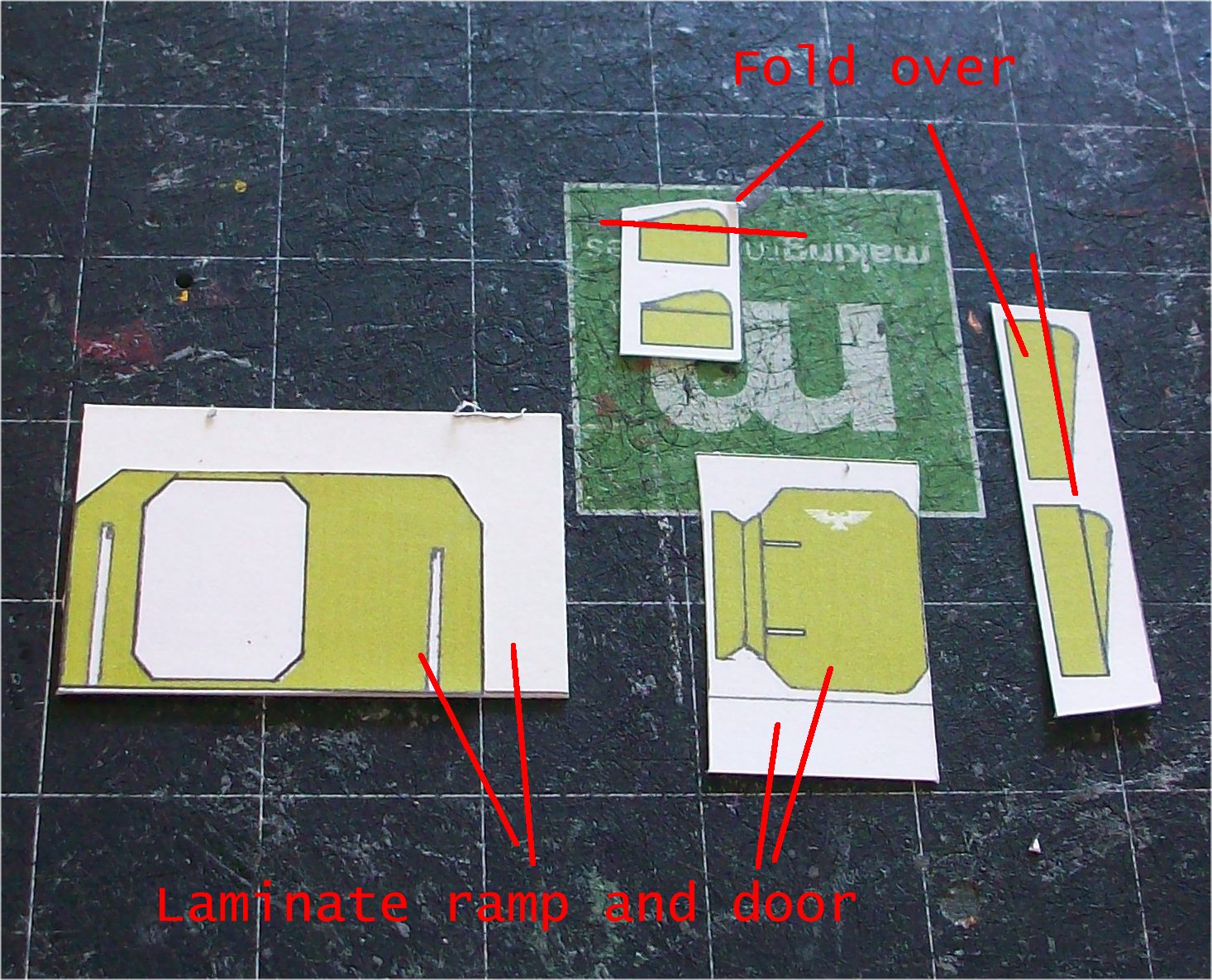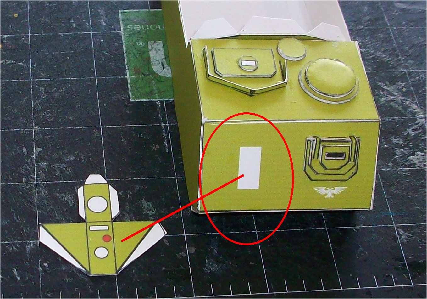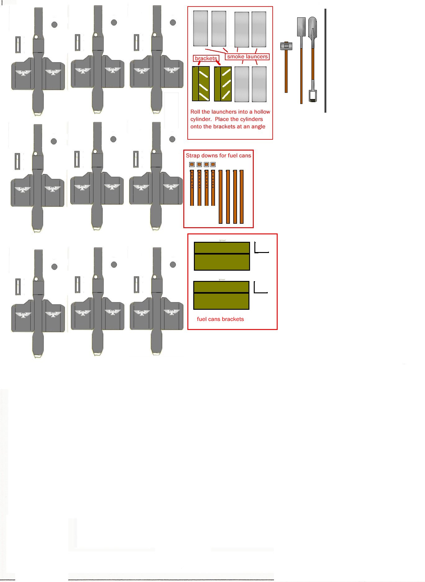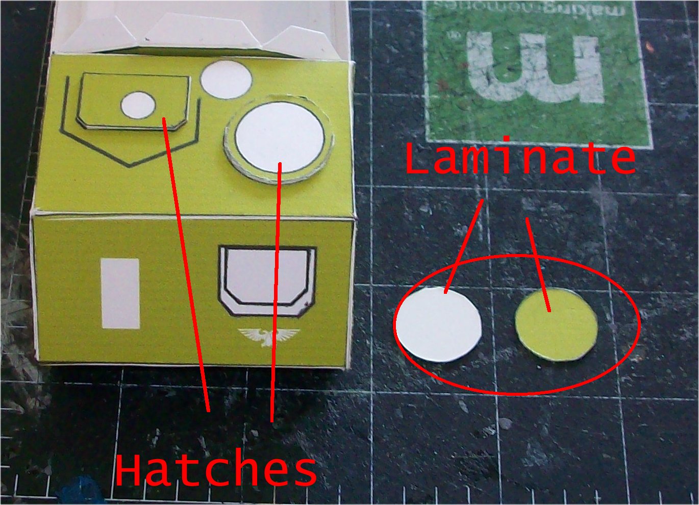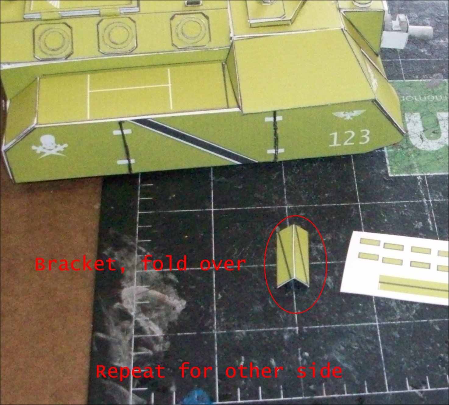 Here is the tutorial on making the hatches and front cannon. At the time of this build, the cannon casing was too short. There is an updated casing on the misc page of the plans. There are a lot of white edges on the model but do not worry about them now. later on in the build near the end, I will weather the Chimera and take care of all of the white edges. You can color them in as you go along or leave them alone until the end.