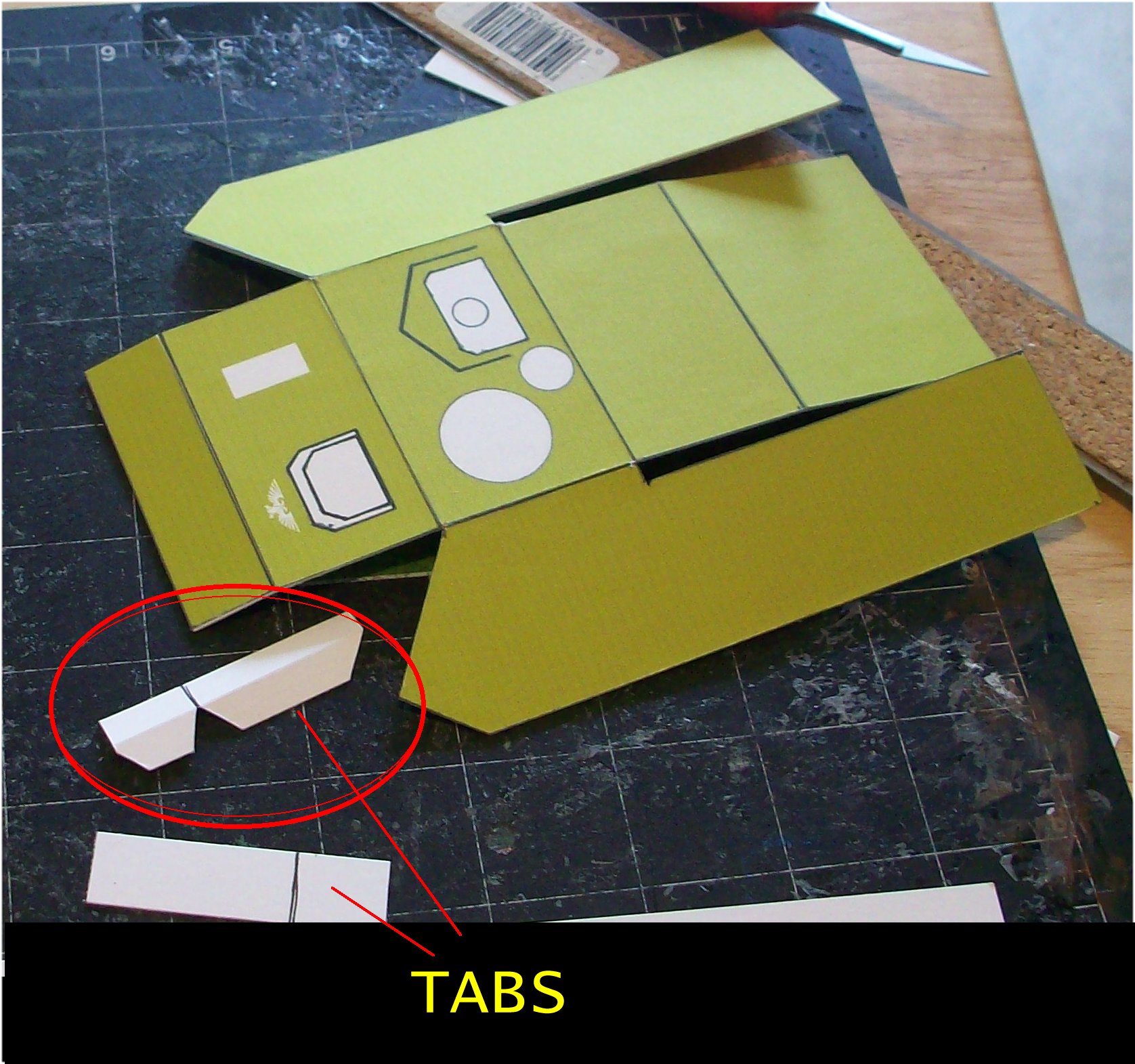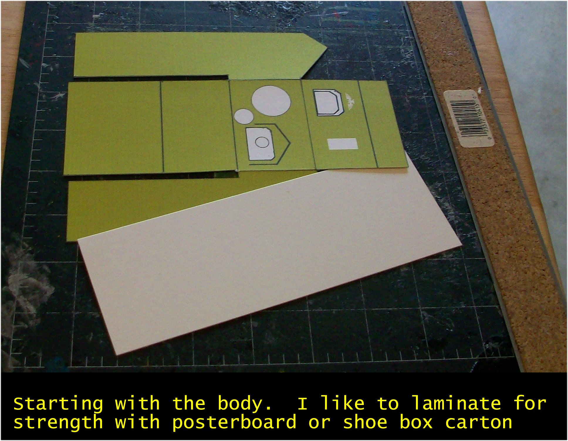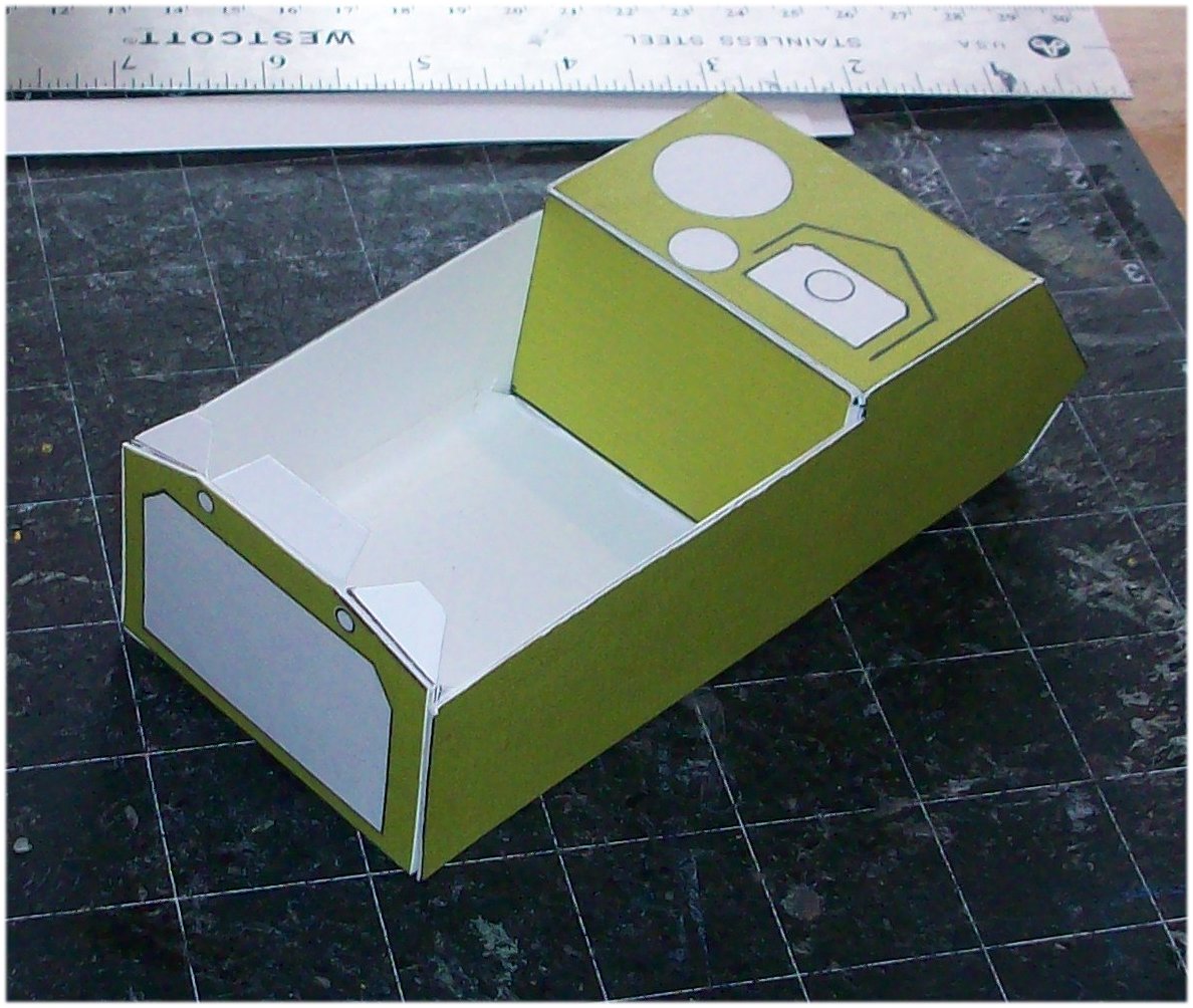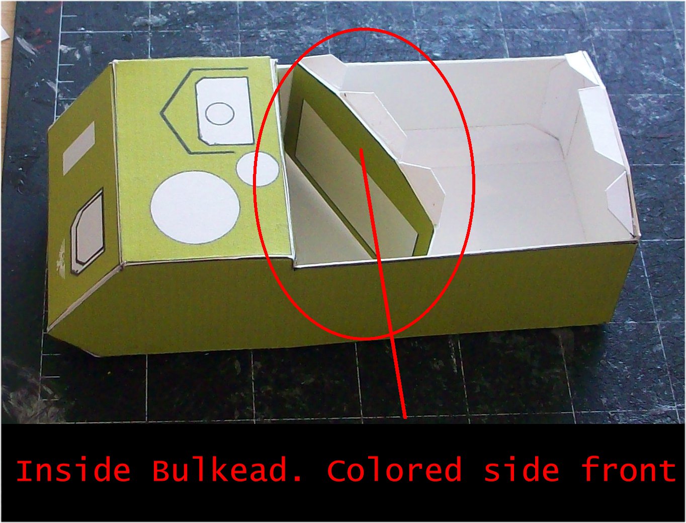 More build pics. This is one technique for getting a concave done using paper. The paper for this, is cardstock. In the U.S. it is 120 weight paper. It is about the same thickness as a business card. Use the round end of your paint brush and on a felt pad go around the edges until it starts to curl up, and presto, you have a concave hatch cover. For laminating the sides I use posterboard thickness to give it strength. you can also use the cardboard from a shoe box. The glue I use is Elmer's white glue all purpose. In some cases I also use tacky glue and super glue for windshields and precise gluing of small items.