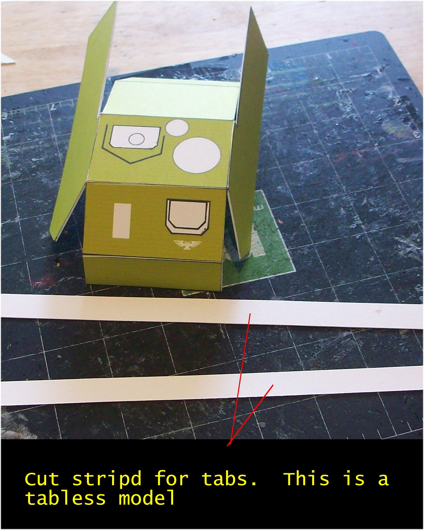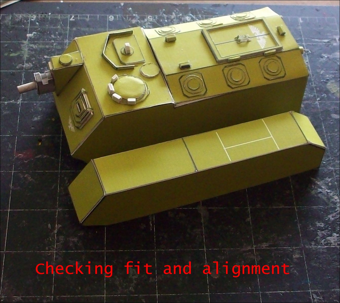 NOTE: There are a few who look with disfavor at my model thinking of it as a replacement or to cut cost. I am in the habit of making dioramas and as such, it is easier and cheaper to build a diorama with a knock-off than to to use a playing piece. Almost all of my paper models are for display purposes, not for gaming.