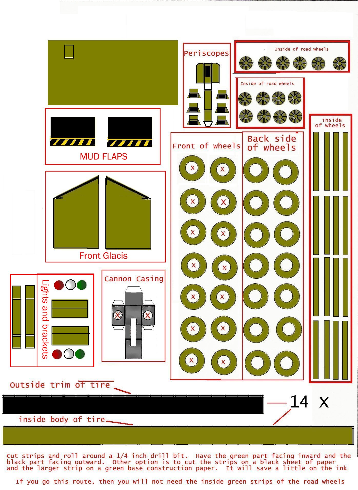 Remember, the templates for this model can be transferred over to sheet styrene, but if you do, you will have to scrounge for the road-wheels. It is hard to form the roadwheels out of styrene but not impossible.