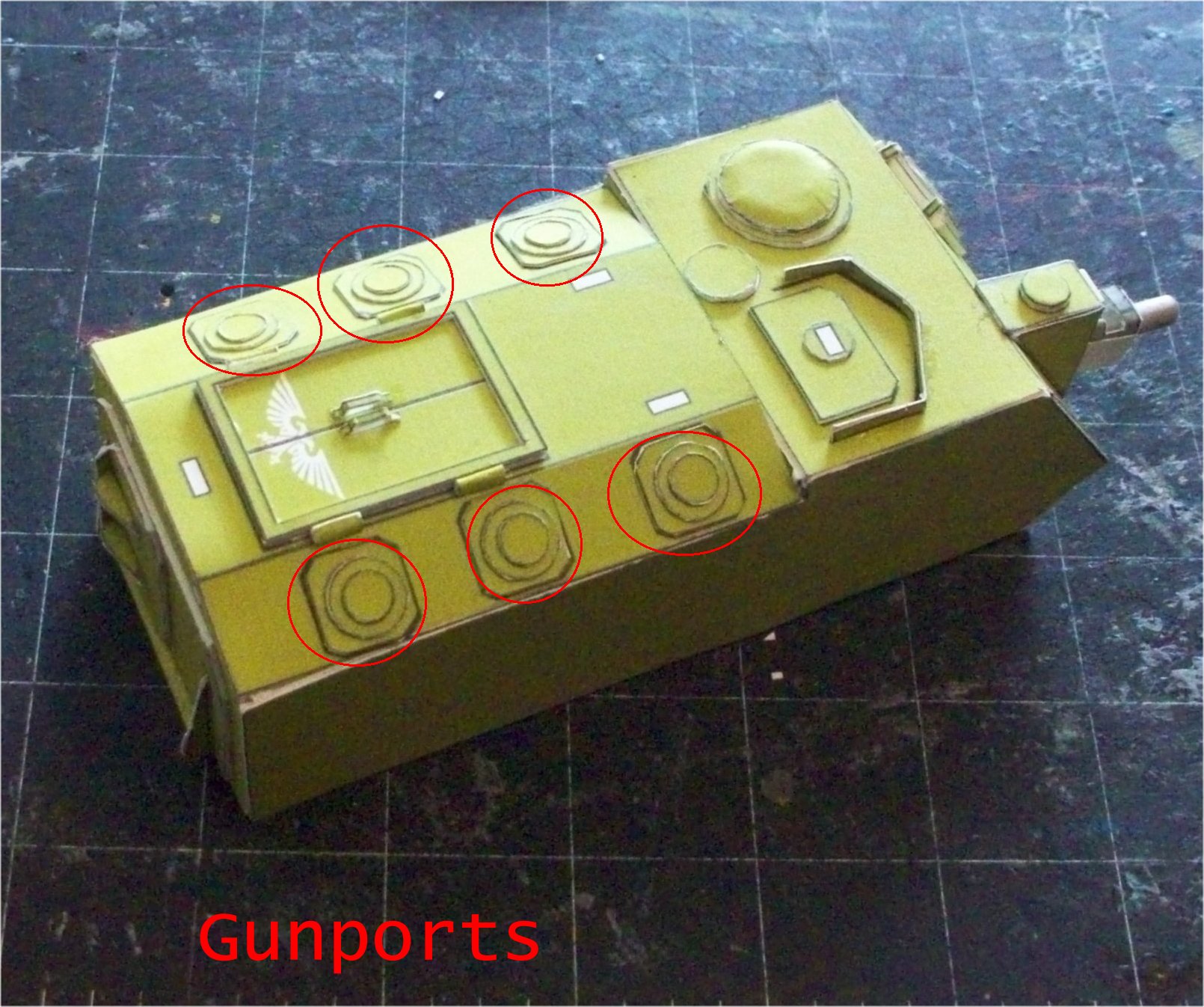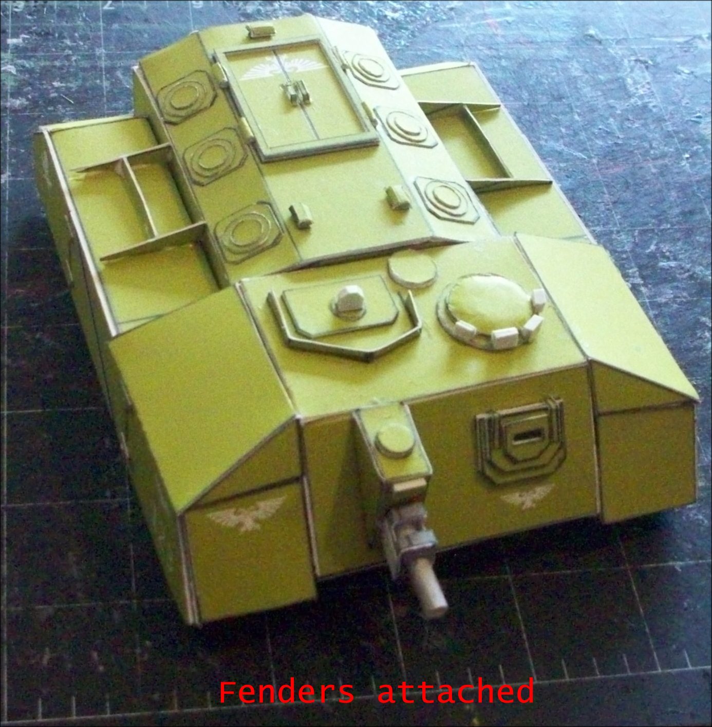 This model is an upgrade from the bolt studded vehicles of the Imperial Guard. When WW-II came around with the improved ammo, the studded armor vehicles became death traps. With the danger of spalling, came the added threat of bolts coming loose by receiving a direct impact on their boltheads. They had a tendency to fly around the crew compartment with a deadly purpose.